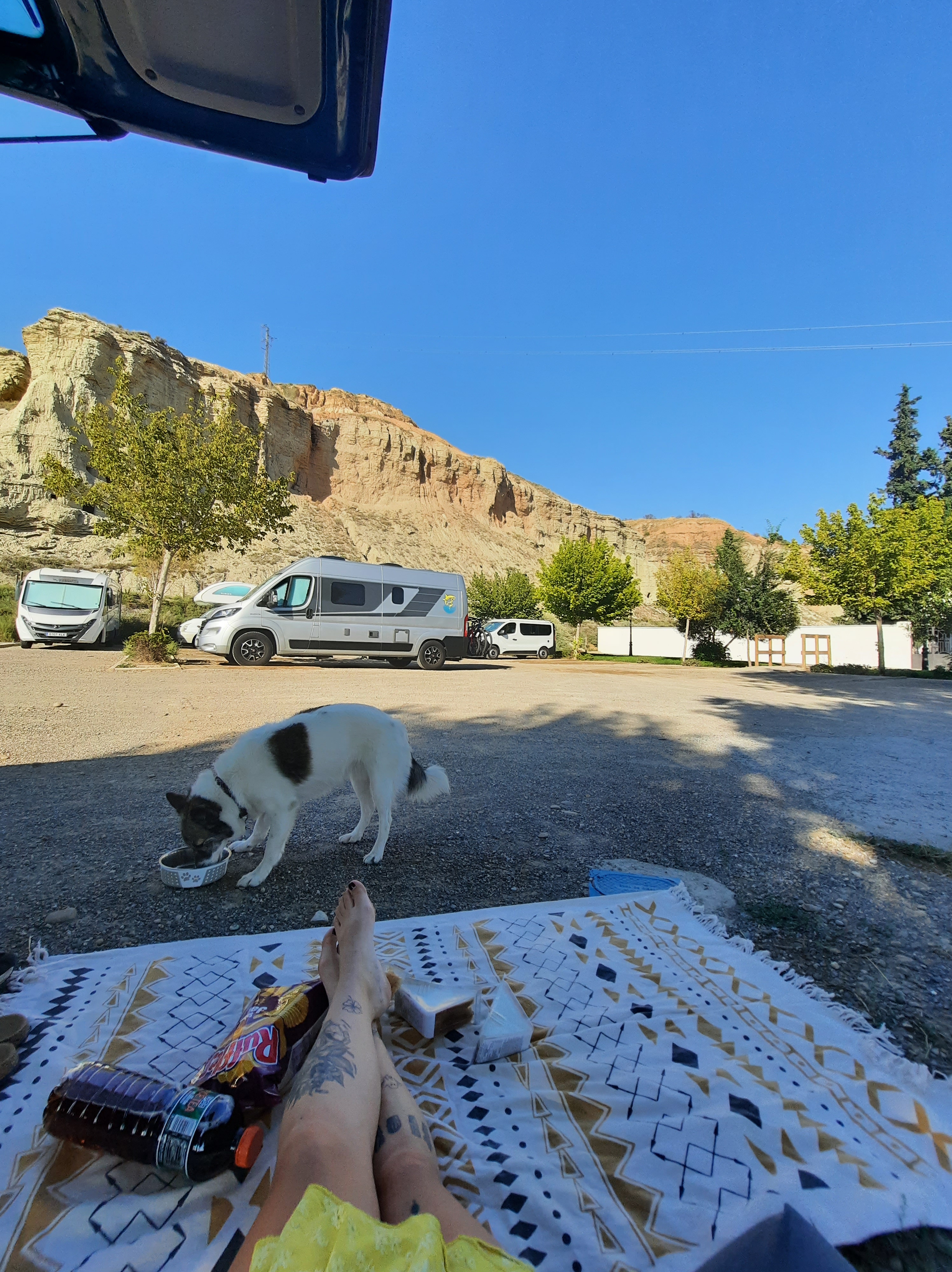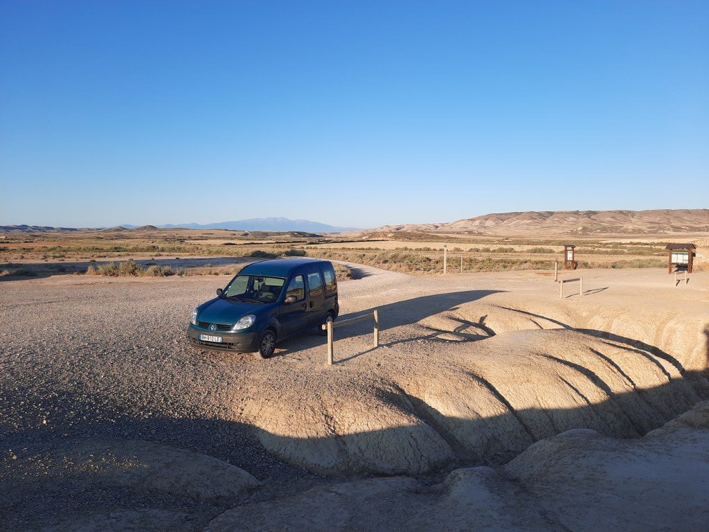 Le soir, je trouve un de mes meilleurs endroits pour dormir jusqu’à présent ! Sur le parking en contrebas des Cuevas d’Arguedas.