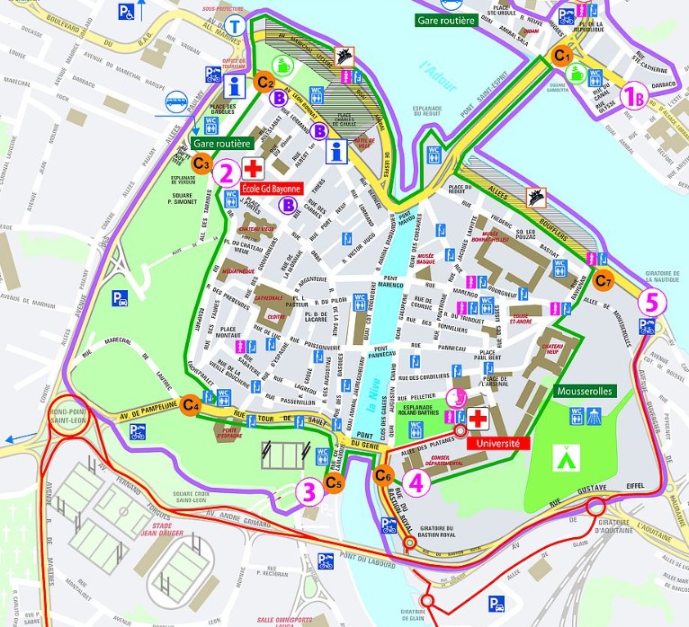 Après avoir acheté de la nourriture pour 2-3 repas et aussi le petit déjeuner, je me dirige vers la ville de Bayonne. Le centre-ville était barré, il faut que j’essaie de trouver une place à l’ombre le plus près possible de l’entrée.