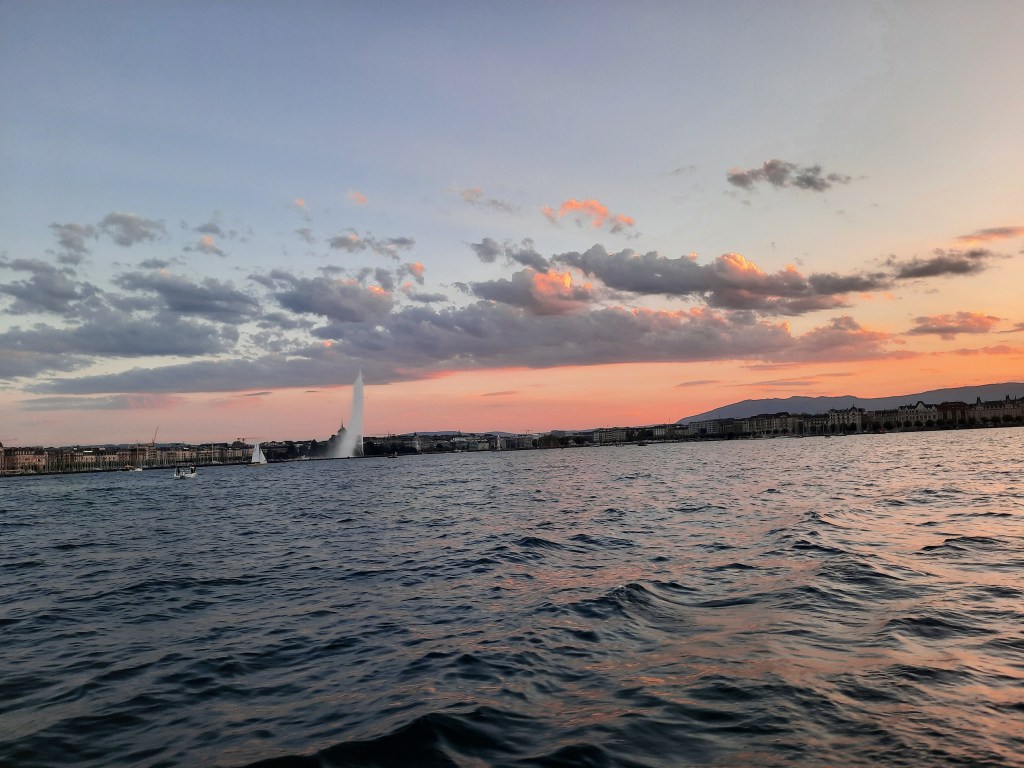 Ensuite on va manger au « Marchand de Sable » dans le quartier de Carouge, je me suis régalé. On se balade en vieille ville puis à la cathédrale. Le jet d’eau du lac Léman est toujours impressionnant. Surtout à la tombée de la nuit avec les belles couleurs que nous offre le ciel. Les bateaux touristiques sur le lac sont gratuits. J’ai pu y faire un tour avec Nini 🙂