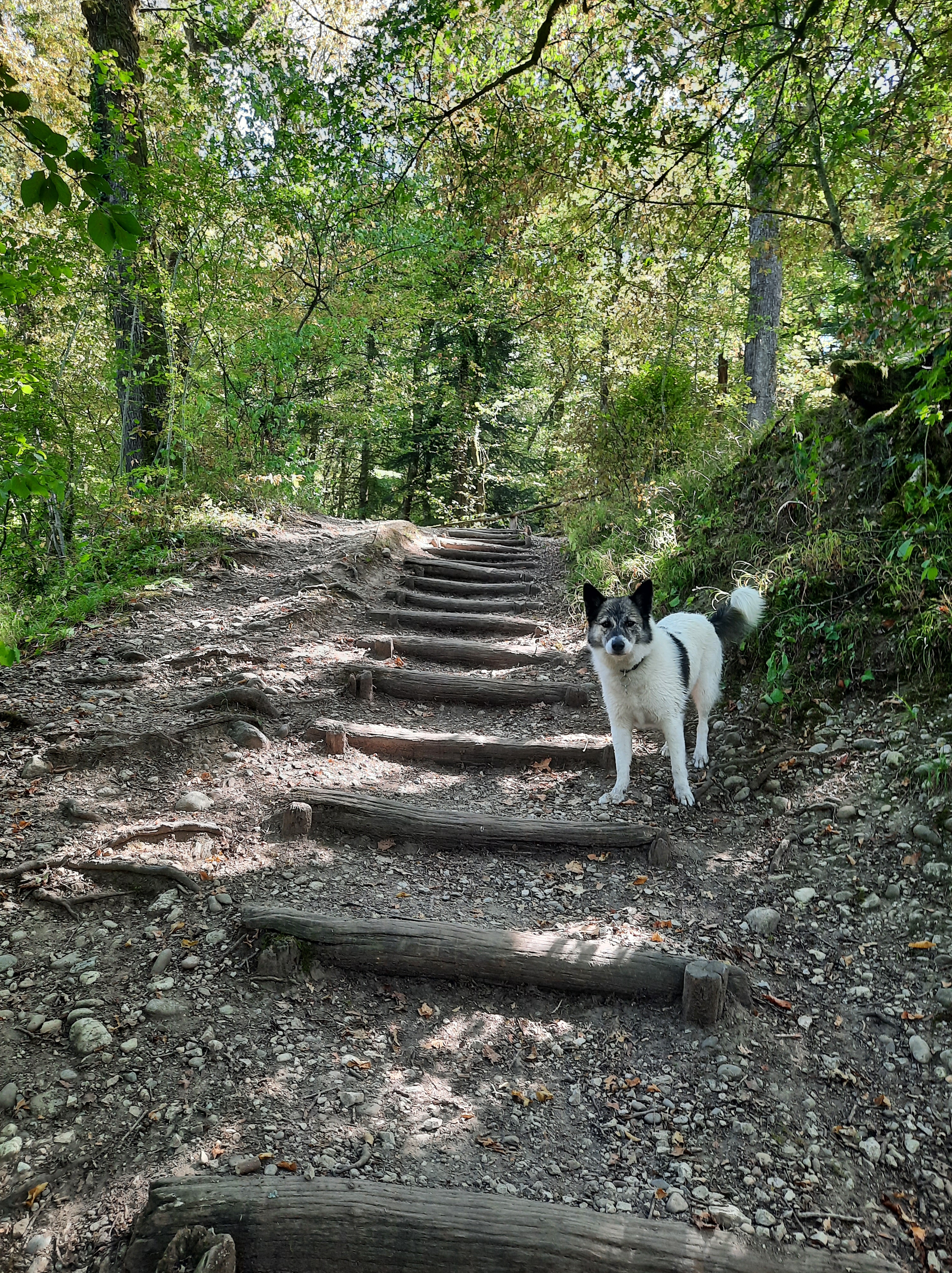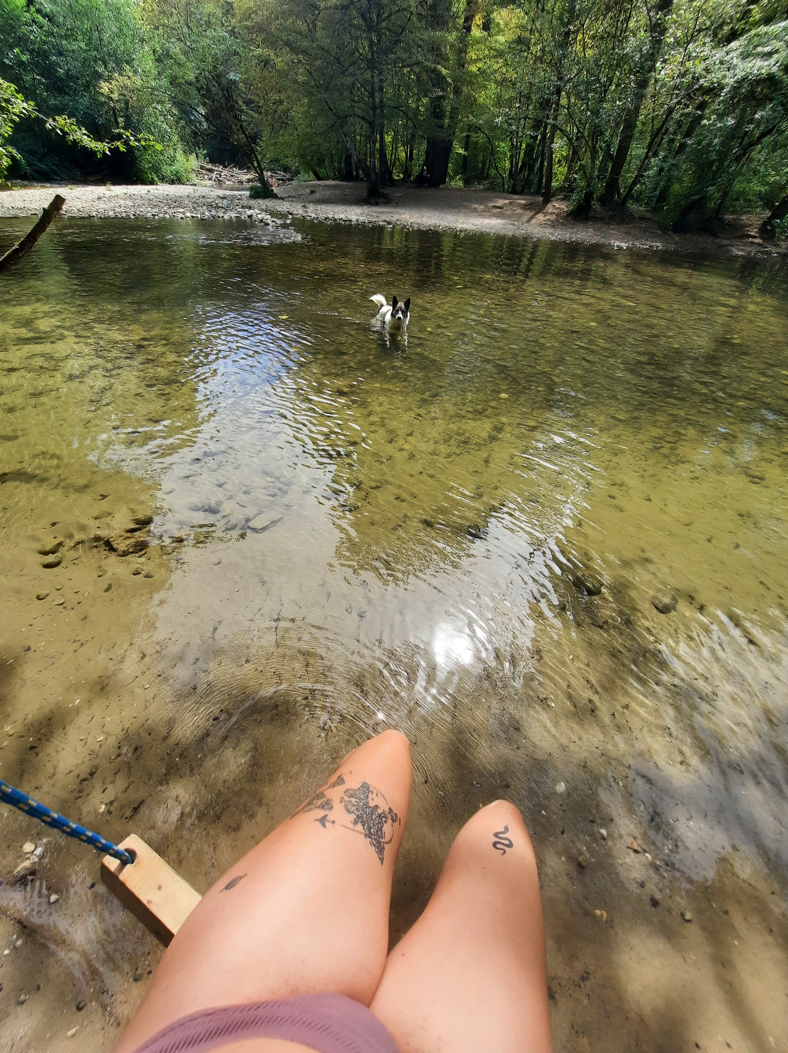 Après avoir fini la visite du musée, je pars chercher ma chienne et nous trouvons un endroit pour manger (je ne sais plus où… oups) puis on reprend le bus, j’ai dû payer un ticket pour Nini de 5,60 CHF (qui équivaut à presque 6€). On arrive à Versoix où il connaît un endroit tranquille pour pouvoir s’y baigner. On arrive à l’endroit précis, une dame et ses deux chiens étaient déjà présents et jouaient dans l’eau. Nini la plus heureuse est partie les rejoindre.