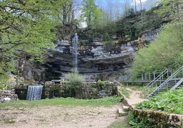 J’arrive après quelques minutes de marche à la cascade. Mais en plein mois d’août, elle ne coule pas abondement. Il y avait beaucoup d’enfants qui trempaient leurs pieds. Je ne suis pas restée bien longtemps… peut-être une prochaine fois.