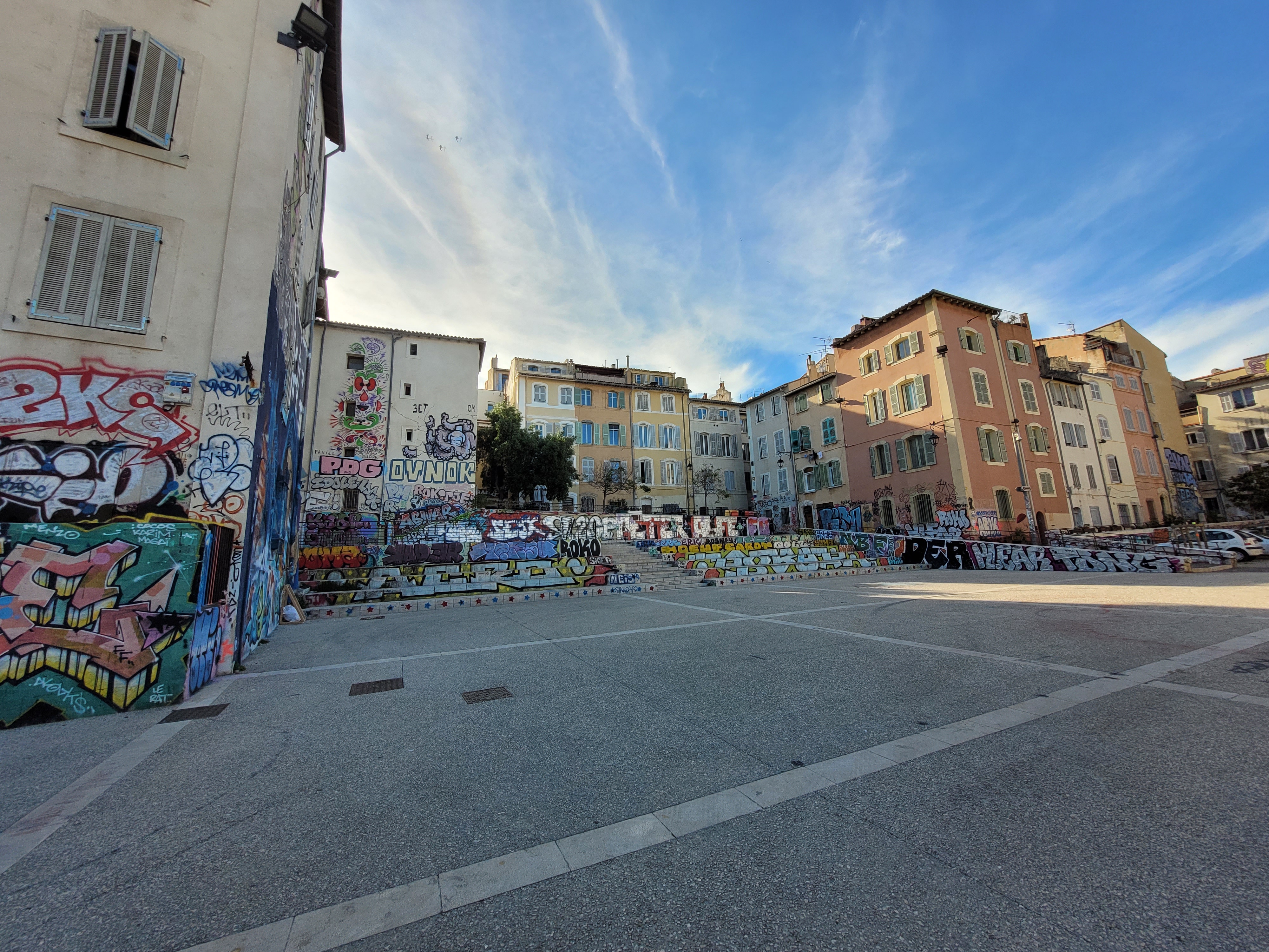 Le quartier du panier est vraiment très sympathique, c’est mon coin favori de Marseille. La grande cathédrale néo-byzantine La Major est aussi splendide. Le midi je mange un sandwich acheté à la boulangerie. Pour l’après-midi, je change ma voiture de place pour la mettre dans un parking souterrain. Je laisse Ounie avec sa gamelle d’eau et les fenêtres ouvertes. Je savais que ça allait être l’enfer avec la foule venue voir la flamme olympique.