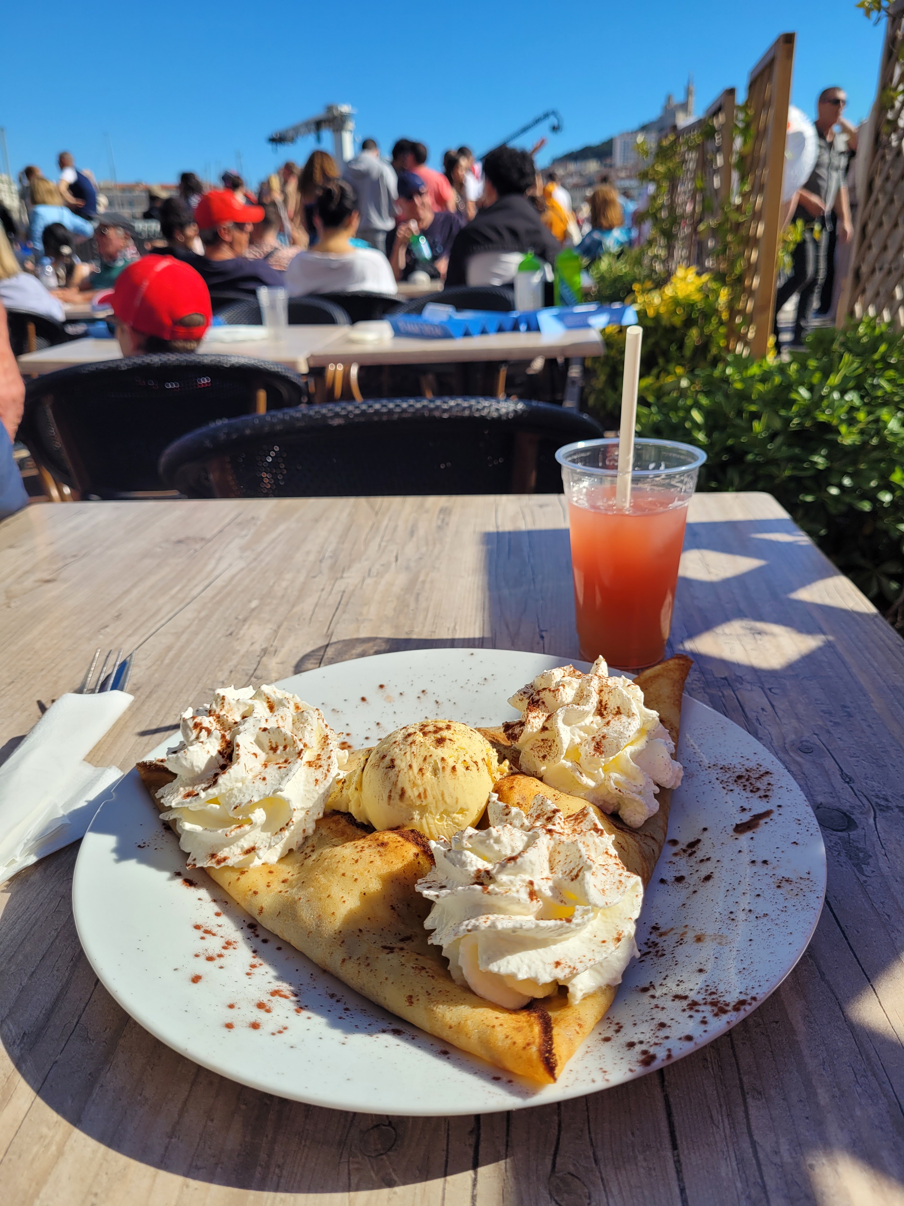 J’ai eu ma dose de population et de socialisation, je m’accorde une pause où je commande une crêpe et un cocktail.