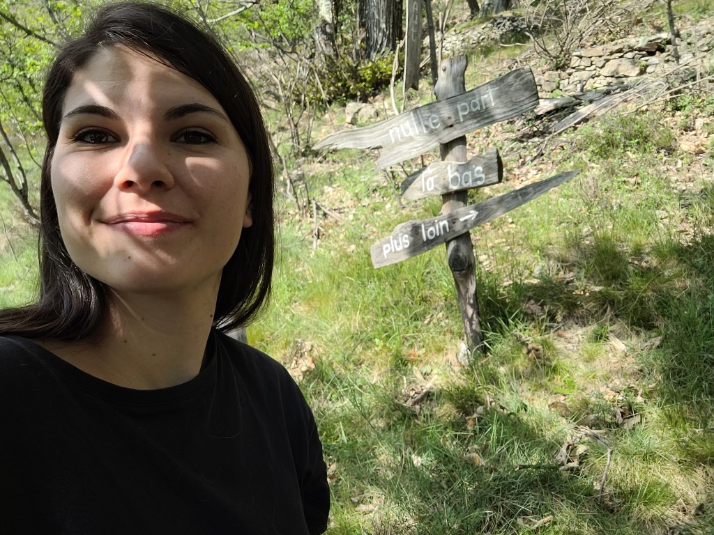 Je m’accorde une pause pour me détendre, manger et boire un coup. Ounie aussi a besoin de se dégourdir les pattes. Je me suis arrêtée dans un petit chemin très mignon, cet endroit était d’un calme reposant.
