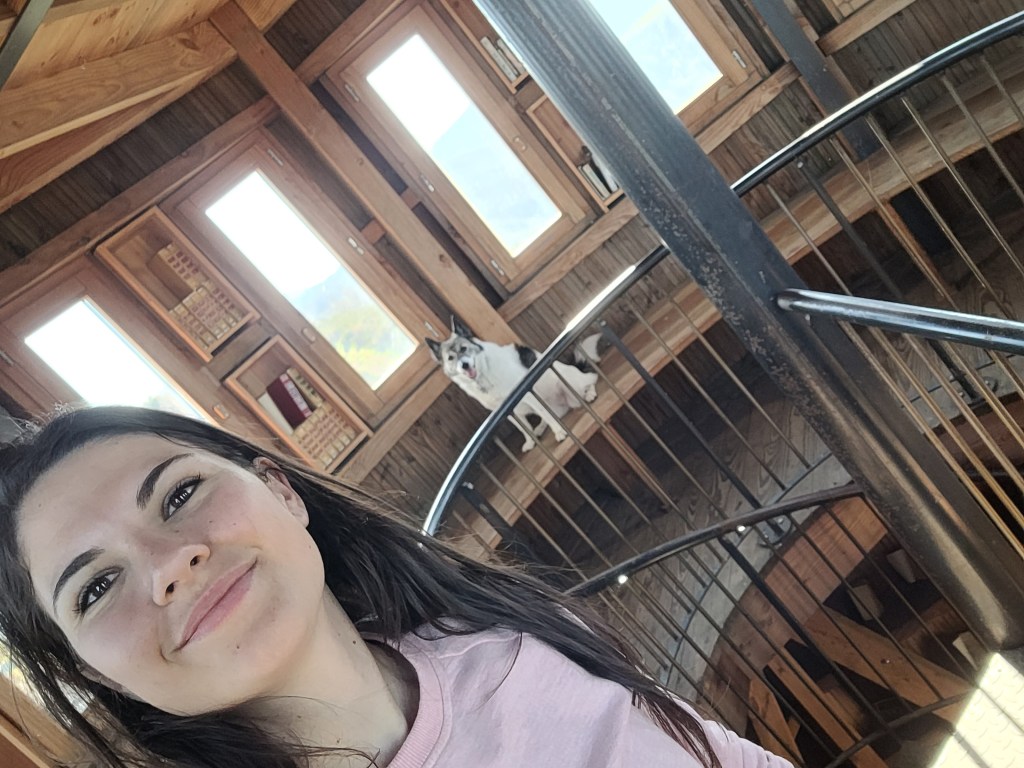 Après cette visite, je reprends la route. 1h26 plus tard, je stationne sur un parking pour faire une pause. Je suis à Septèmes-les-Vallons. Au final j’y reste pour passer la nuit. On est juste en dessous du centre culturel Louis Aragon. Je commence à avoir faim. Je prends mon sac avec ma nourriture et je monte les marches pour m’installer devant le centre et admirer la vue qui s’offre à moi. Je mange un poké bowl que j’ai fait avant de partir. Nini mange ses croquettes à côté de moi.