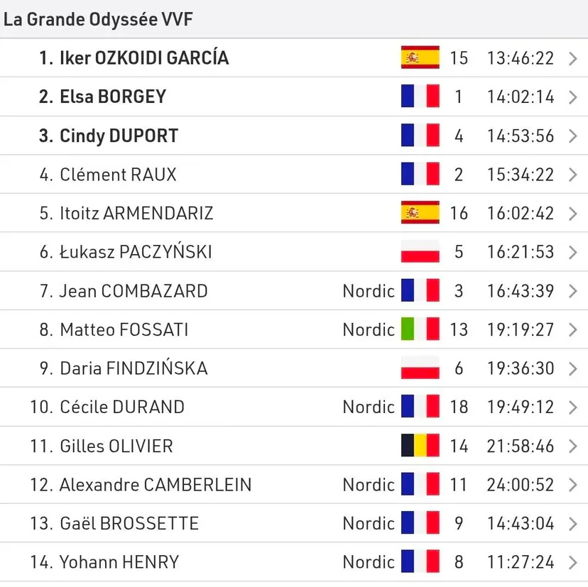 La compétition s’est terminée le 23 janvier à Villars de Lans, avec pour champion : l’espagnol Iker OZKOIDI GARCÍA ! Voici le classement final avec le temps total de la course ⬇ Nous pouvons souligner que deux femmes françaises sont sur le podium 😎