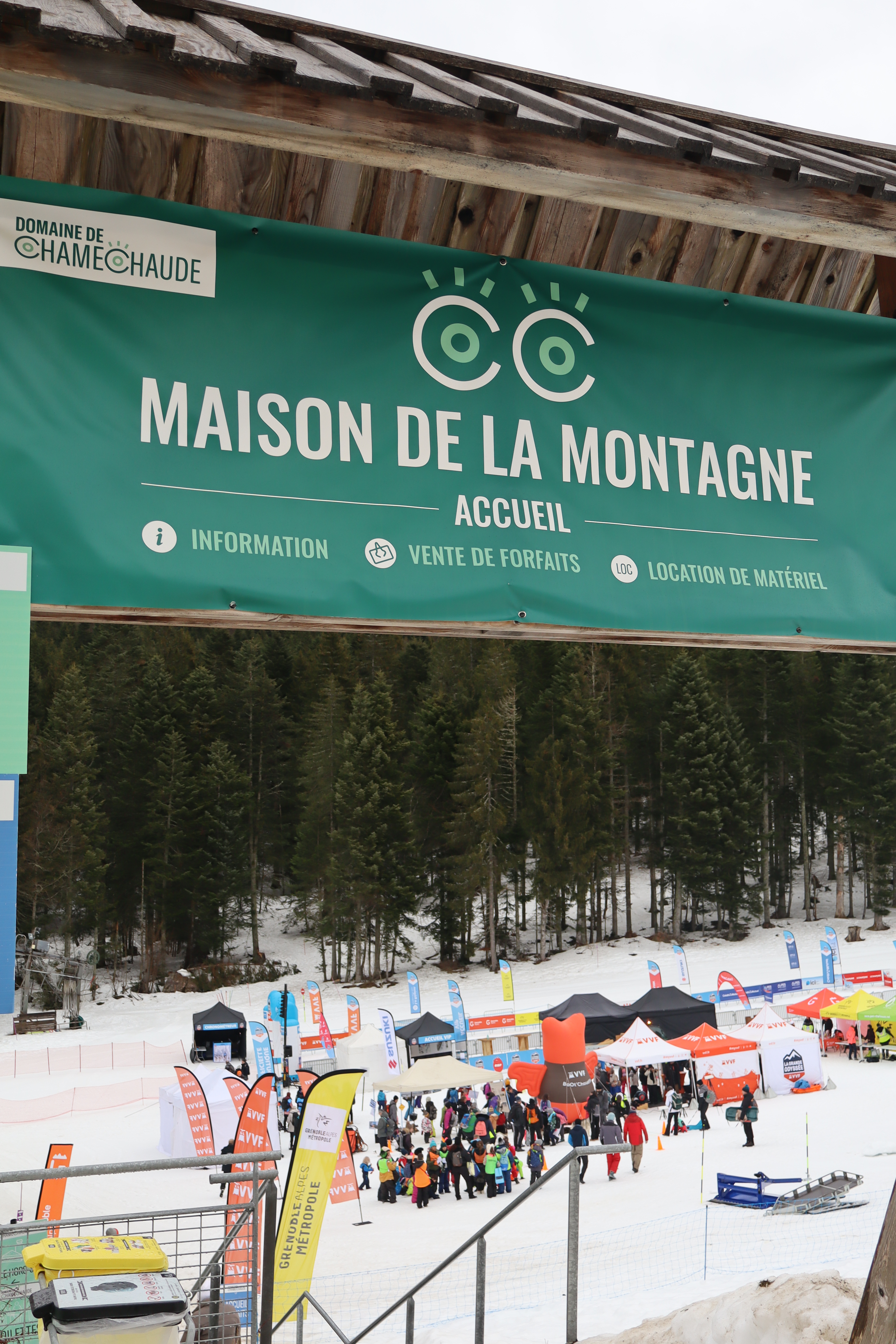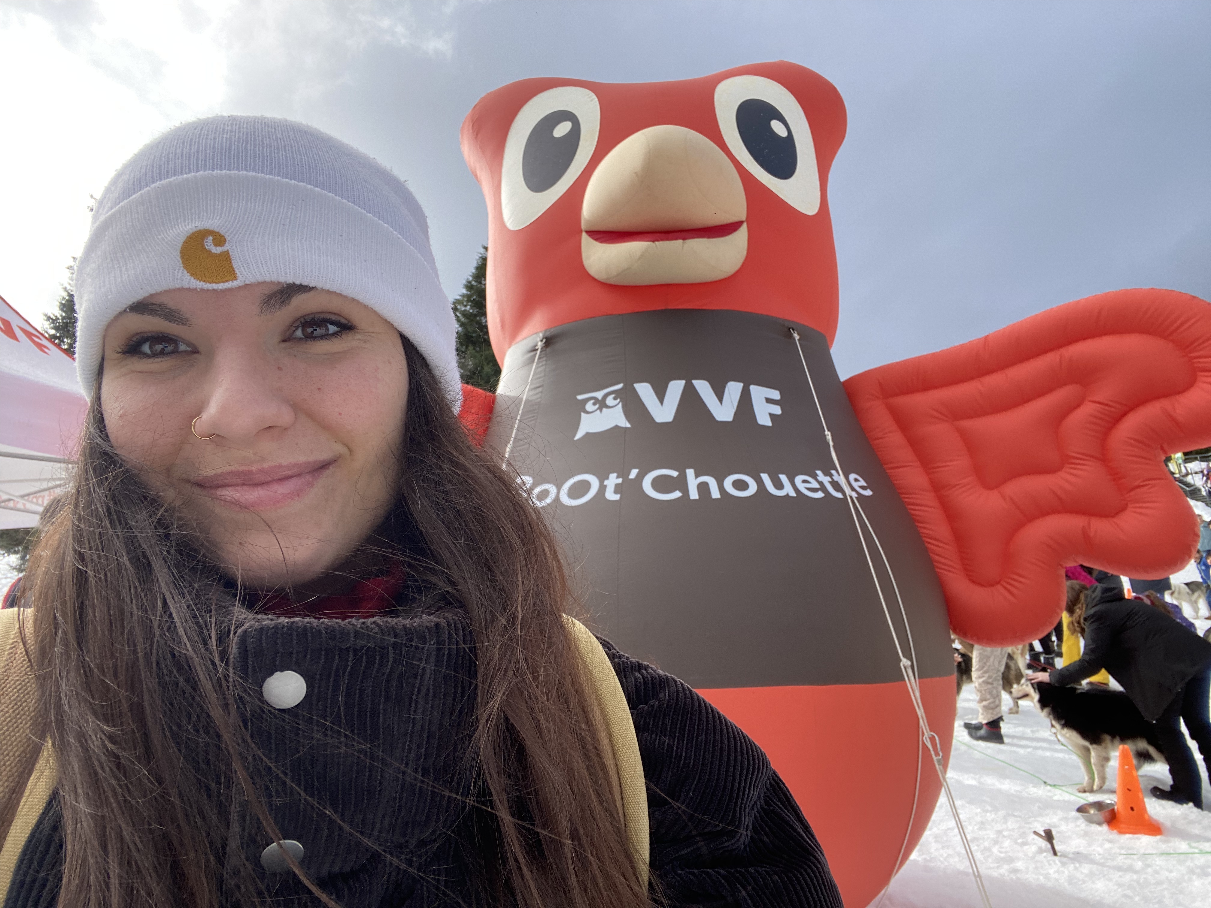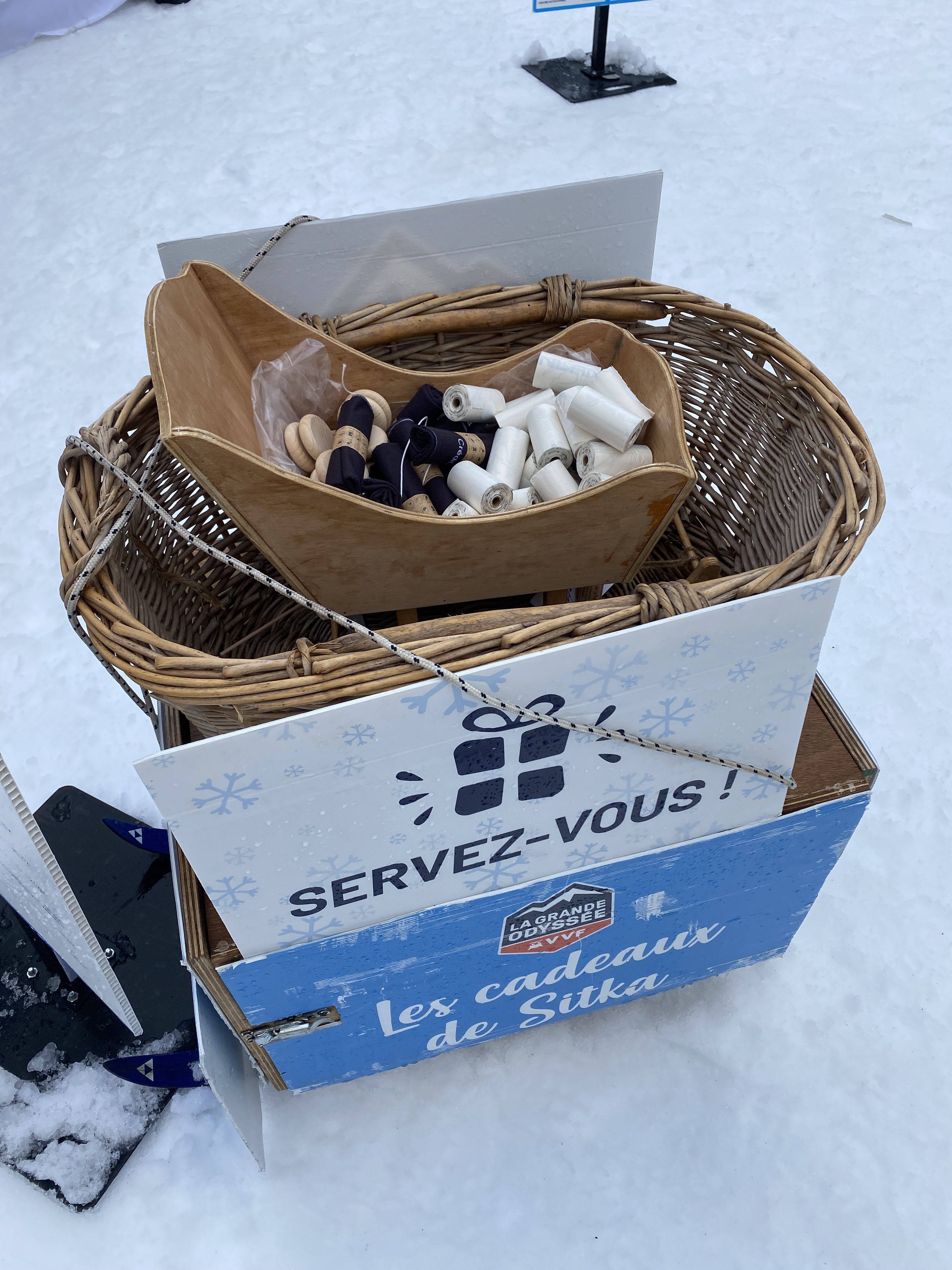 Il y a un stand de découverte et explication du matériel de mushing avec des chiens à l’attache pouvant être caressés. Un stand Parc naturel régional de Chartreuse pour des informations, un stand Grenoble-Alpes avec des animations nature et Grenoble-Alpes Tourisme avec un jeu concours. Il y a aussi de la réalité virtuelle à la sensibilisation du réchauffement climatique et un essai biathlon (je suis pas trop mauvaise). Sans oublier la boutique officielle de la Grande Odyssée, Boot’Chouette et la présence de Sitka, la mascotte qui offre des cadeaux !