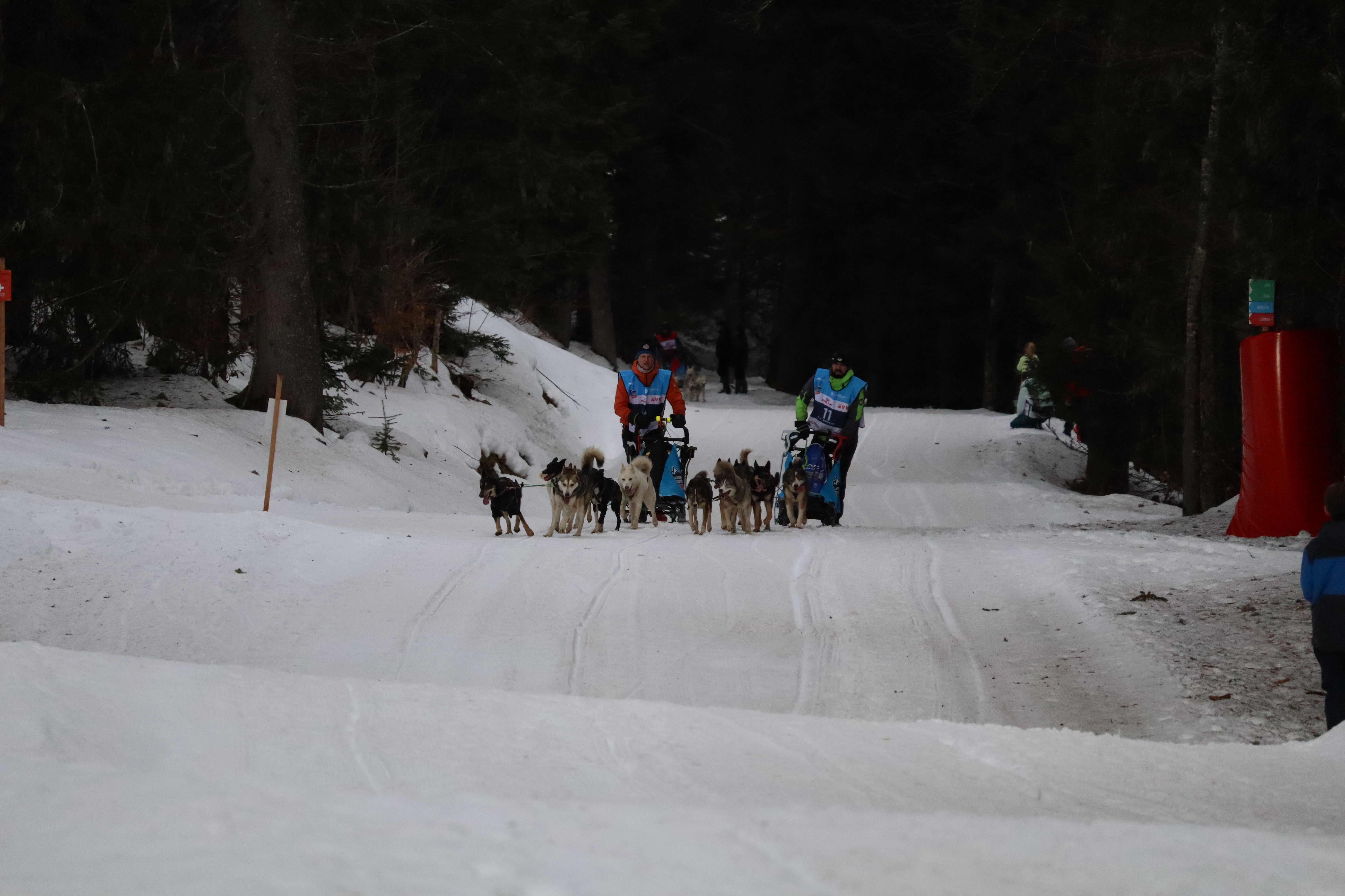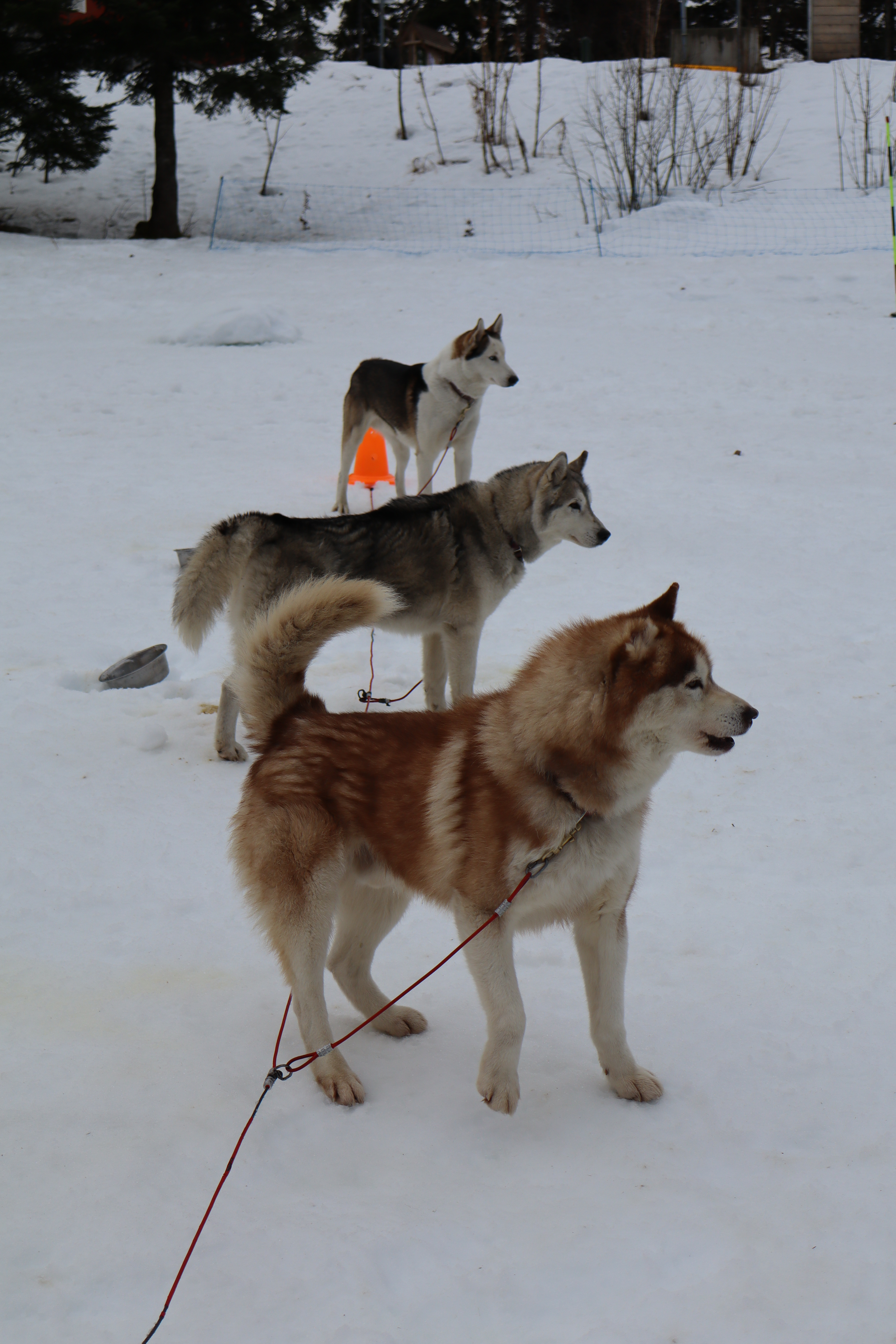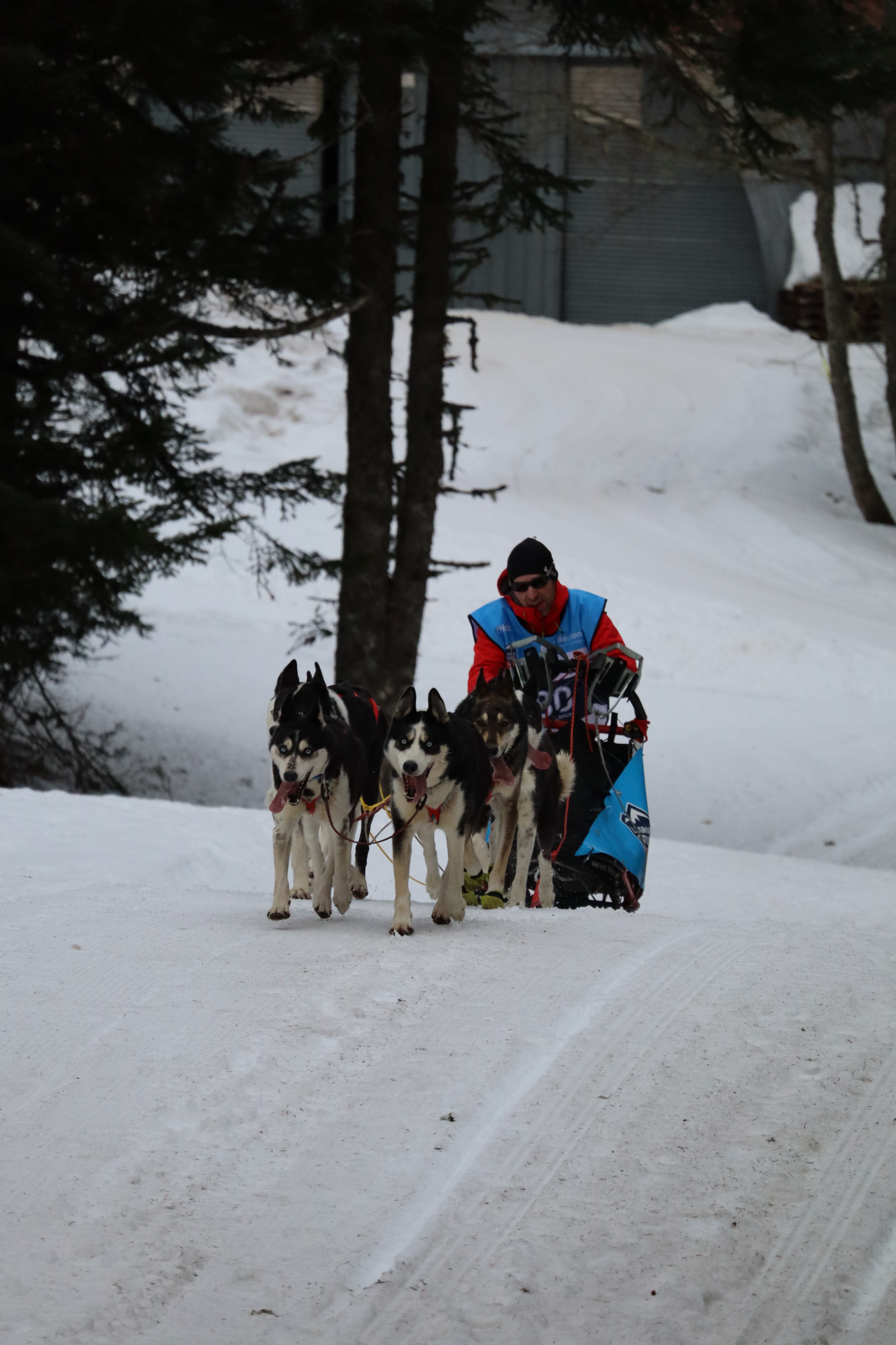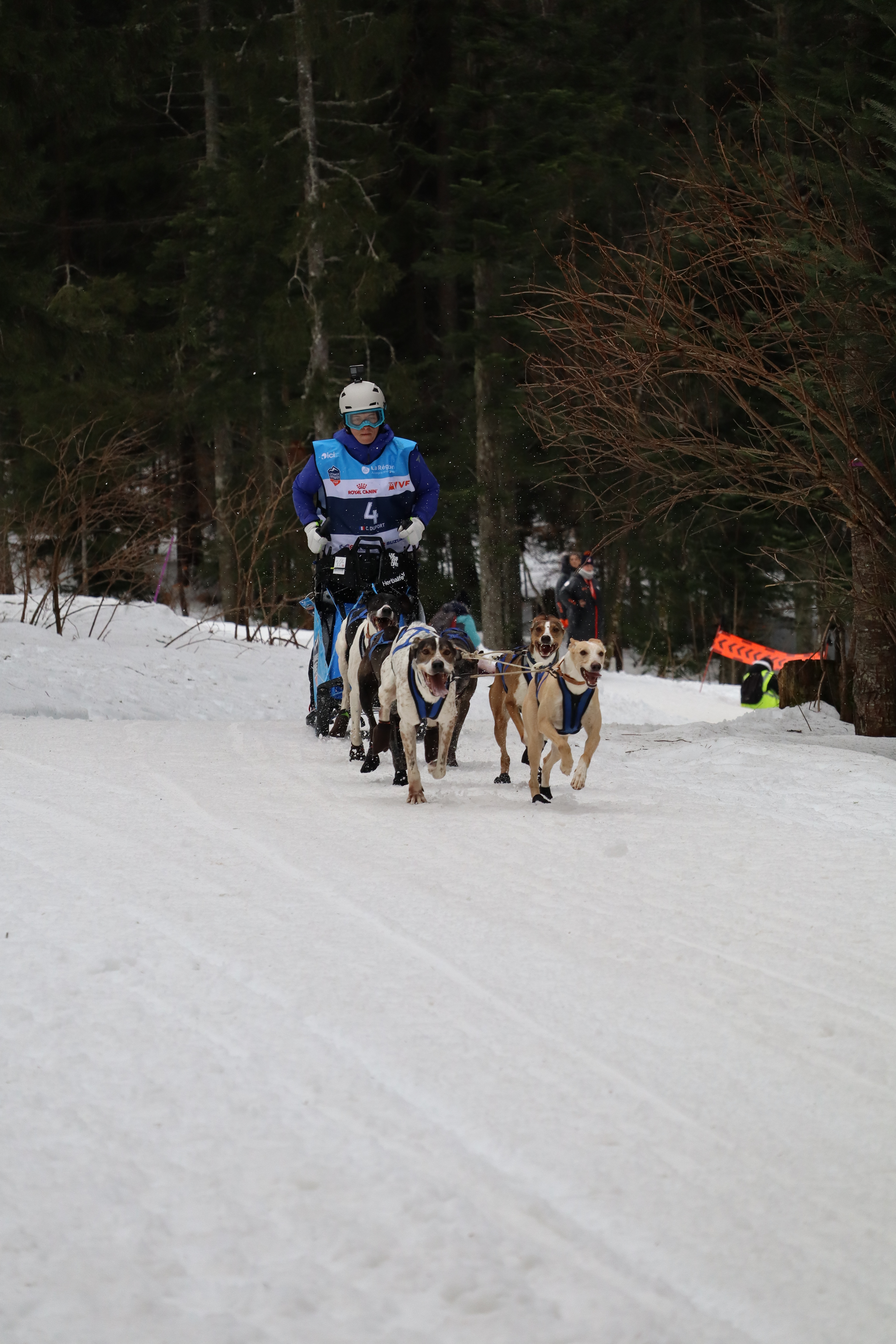 Ils ne partent pas tous en même temps mais environ toutes les 2min d’écart. Je peux assister aux premiers départs, me mettre un peu plus loin dans la forêt, dans les virages et être présente à l’arrivée des mushers.
