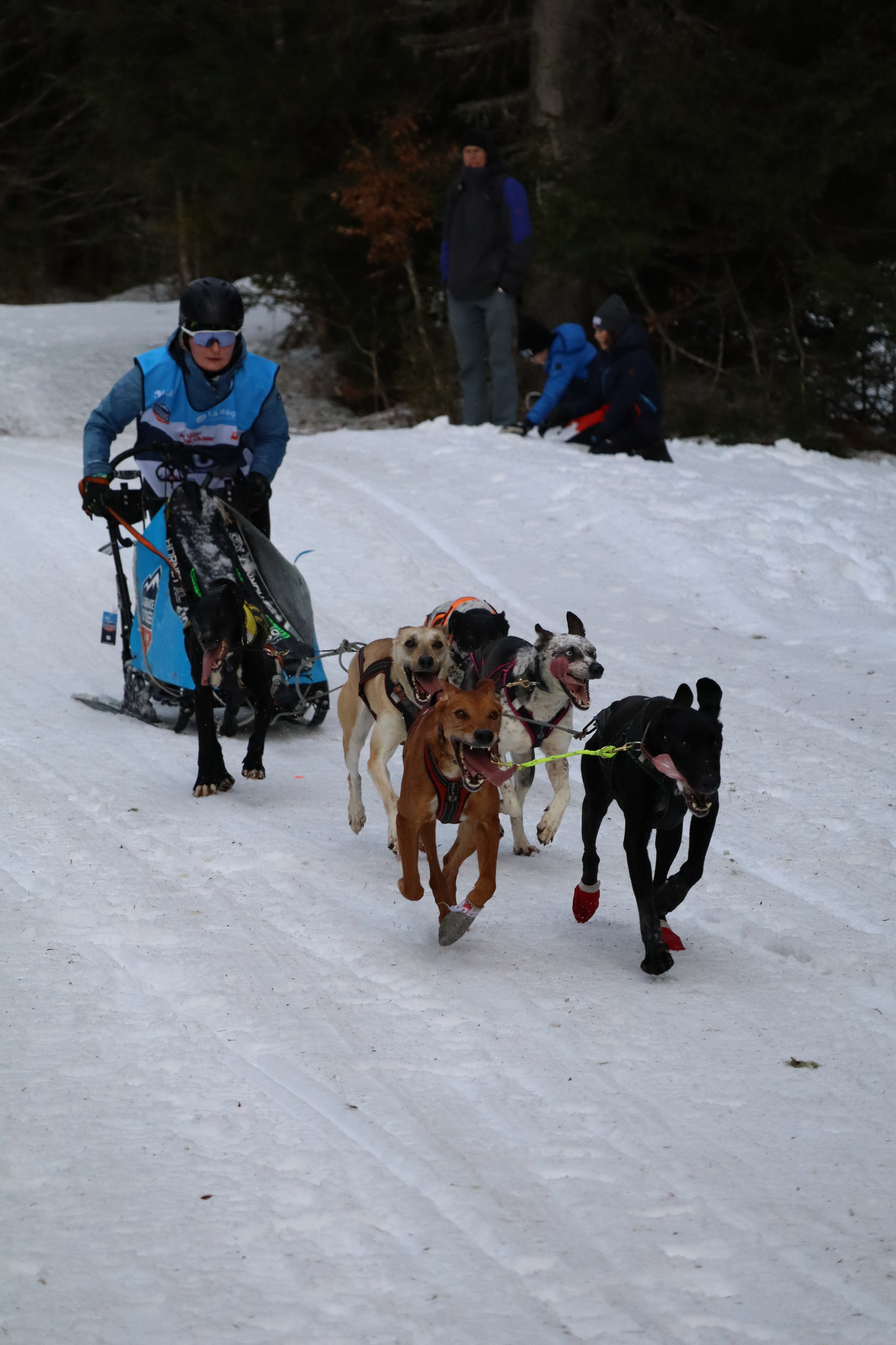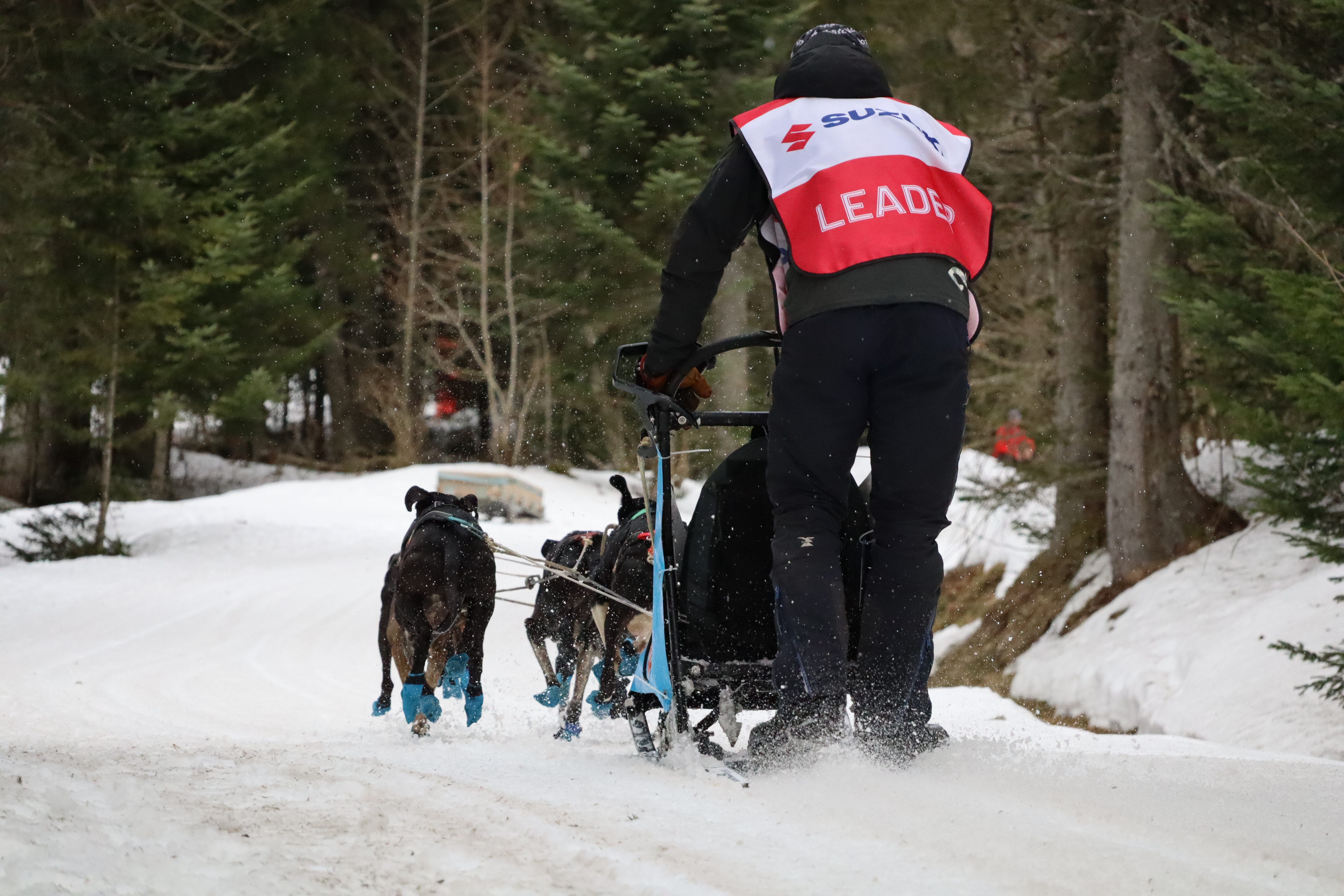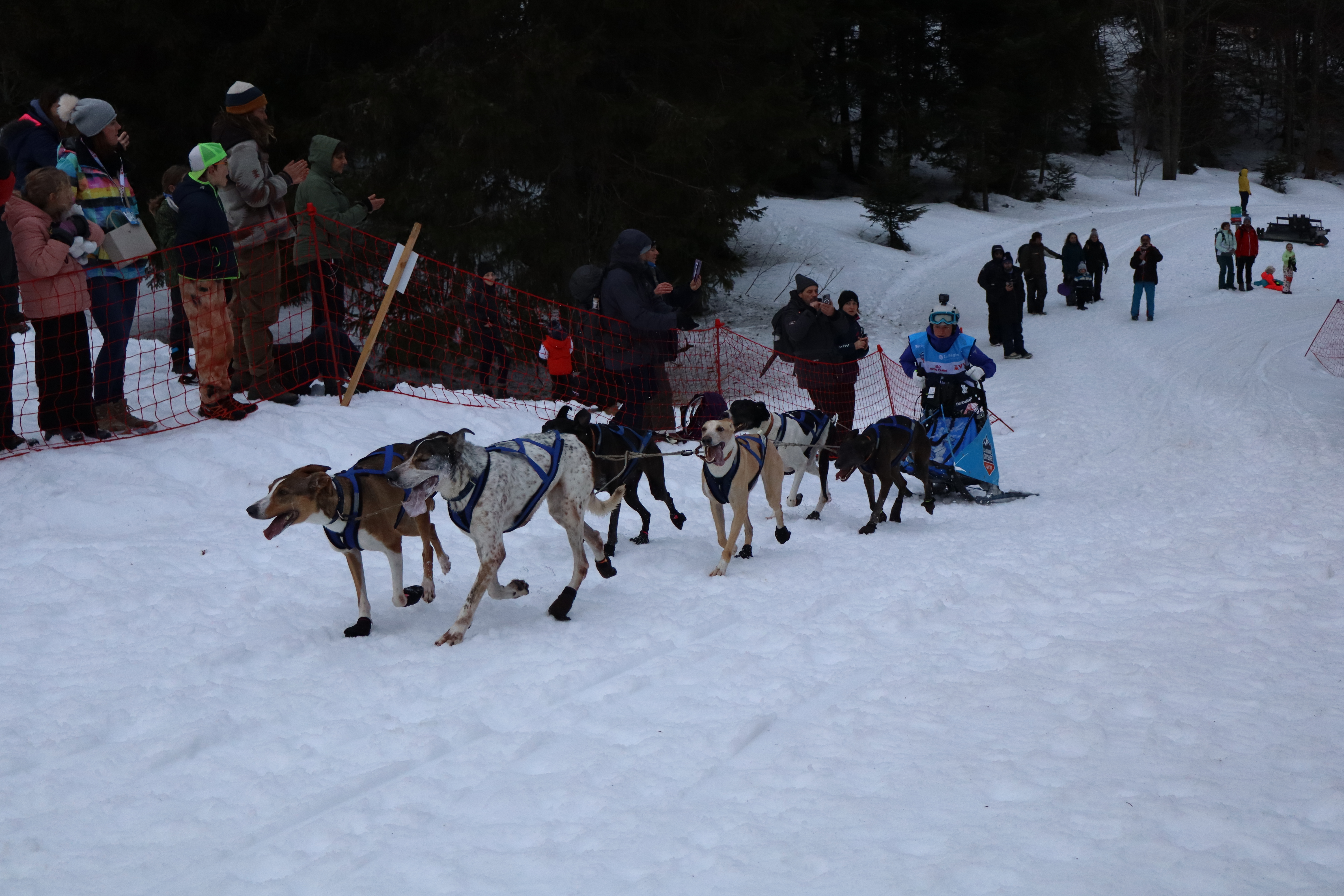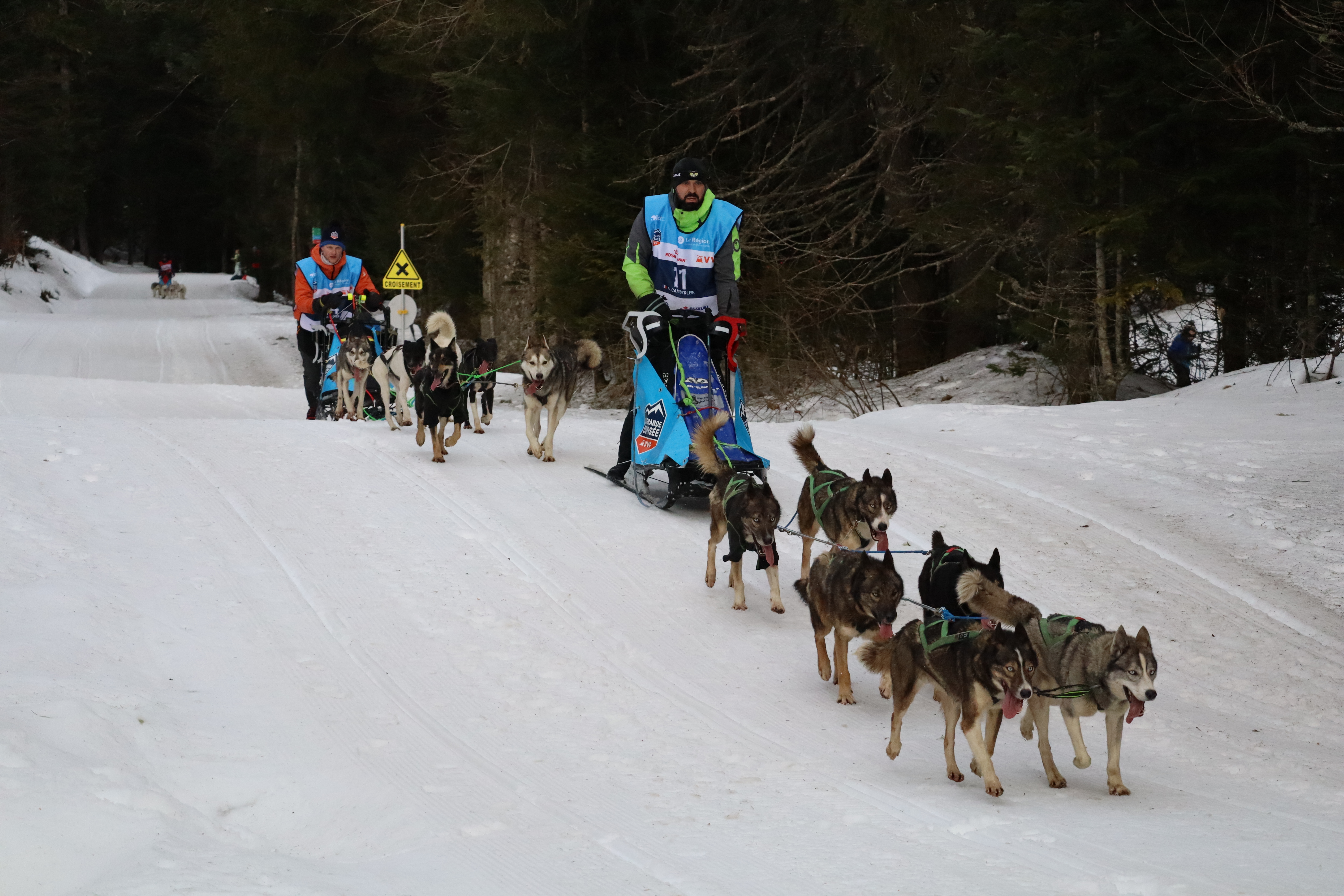 Ils ne partent pas tous en même temps mais environ toutes les 2min d’écart. Je peux assister aux premiers départs, me mettre un peu plus loin dans la forêt, dans les virages et être présente à l’arrivée des mushers.