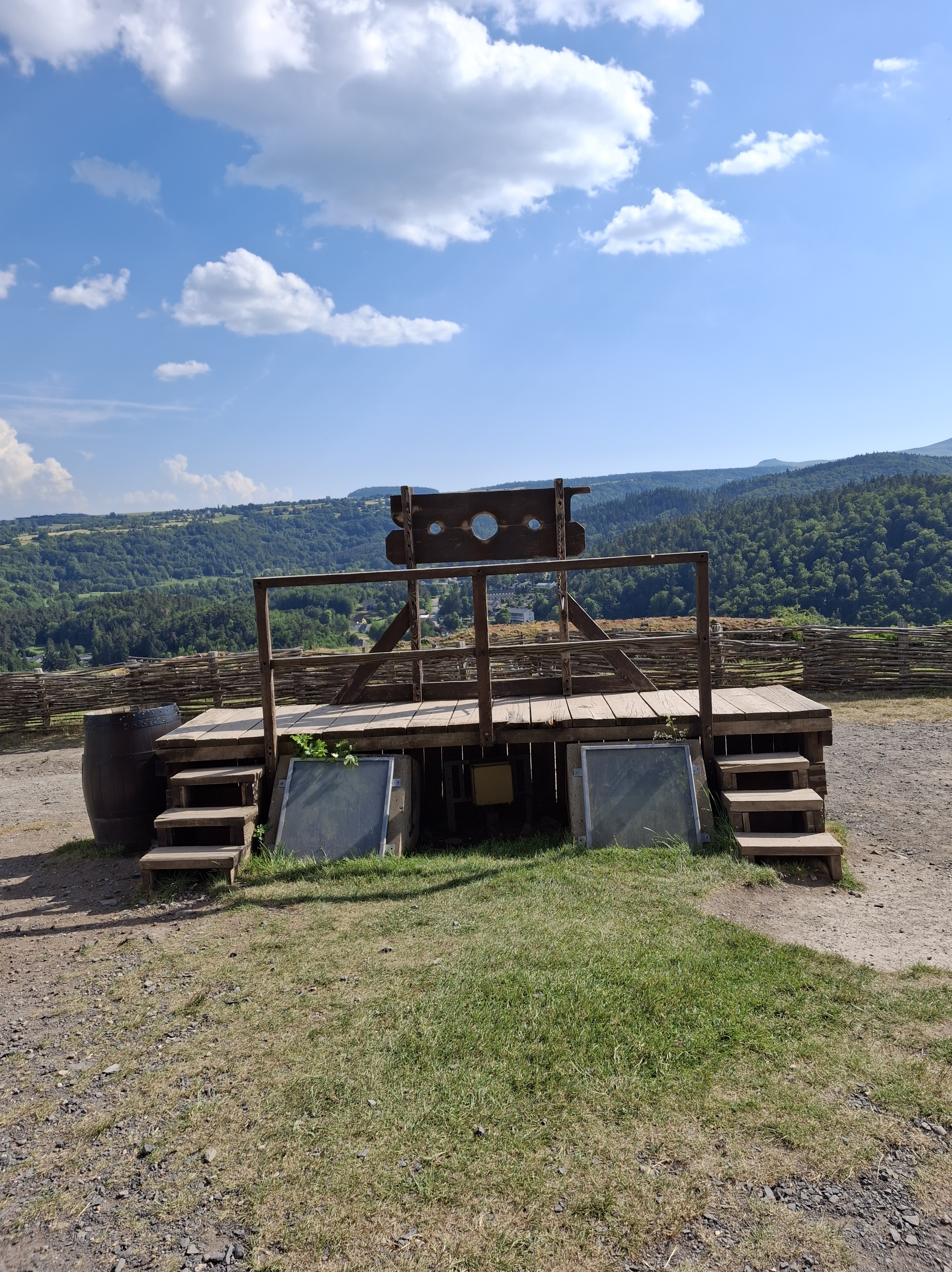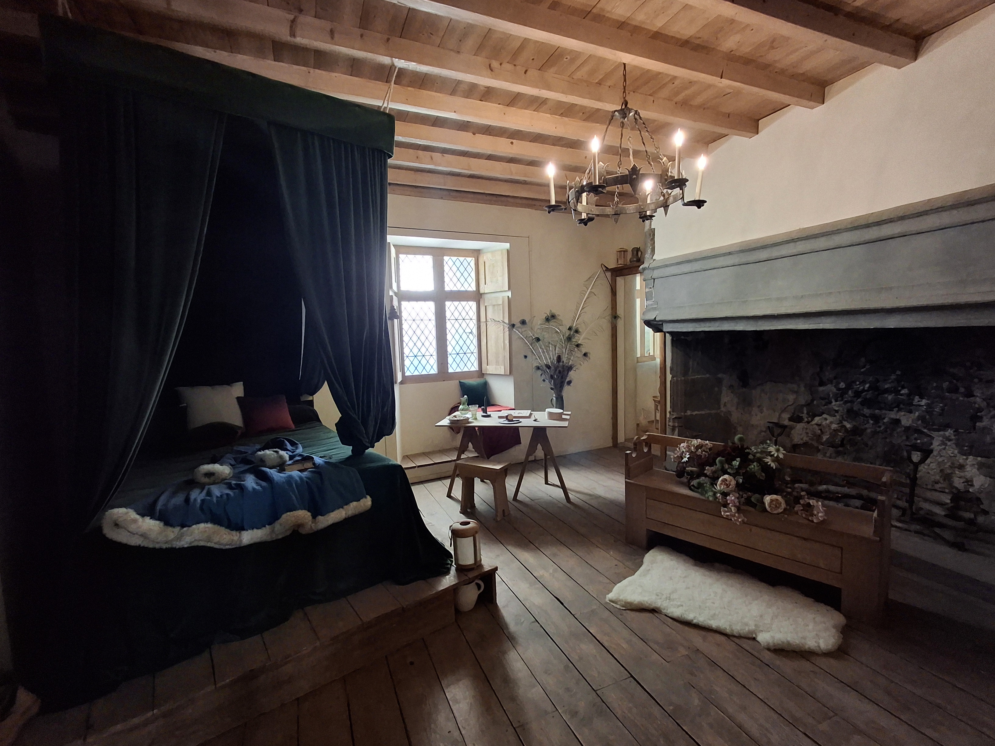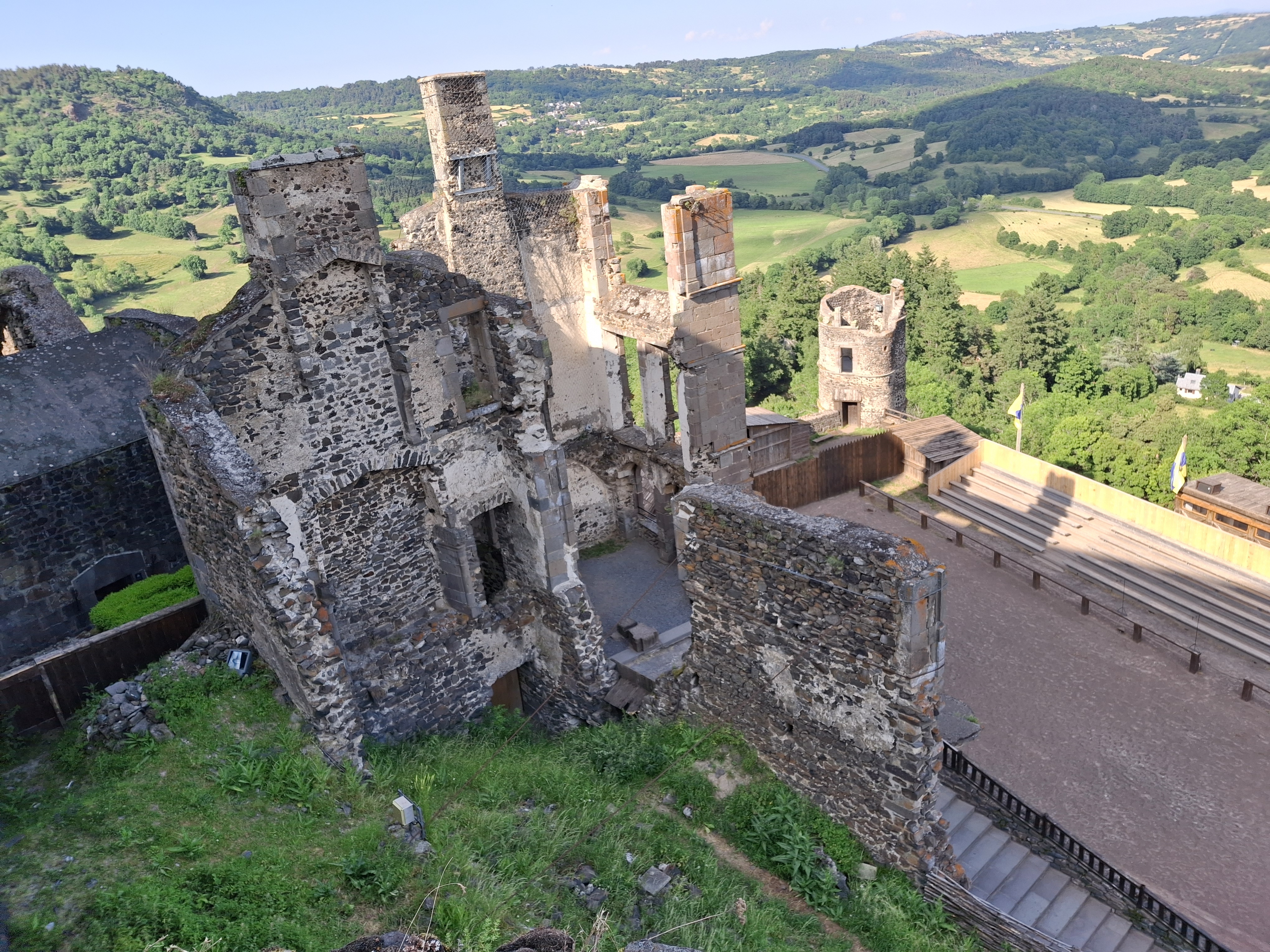 Puis nous rentrons au logement déposer la voiture. Nous partons pour 10-15min de marche pour visiter le château de Murol. Les chiens sont acceptés et la visite commentée est gratuite. Le tarif est de 11,20€ par adulte. La visite était très intéressante, le château en lui-même est aussi bien conservé. Il y a des pièces avec différentes mise en scène, dans l’une d’elle, on peut essayer des costumes de l’époque.