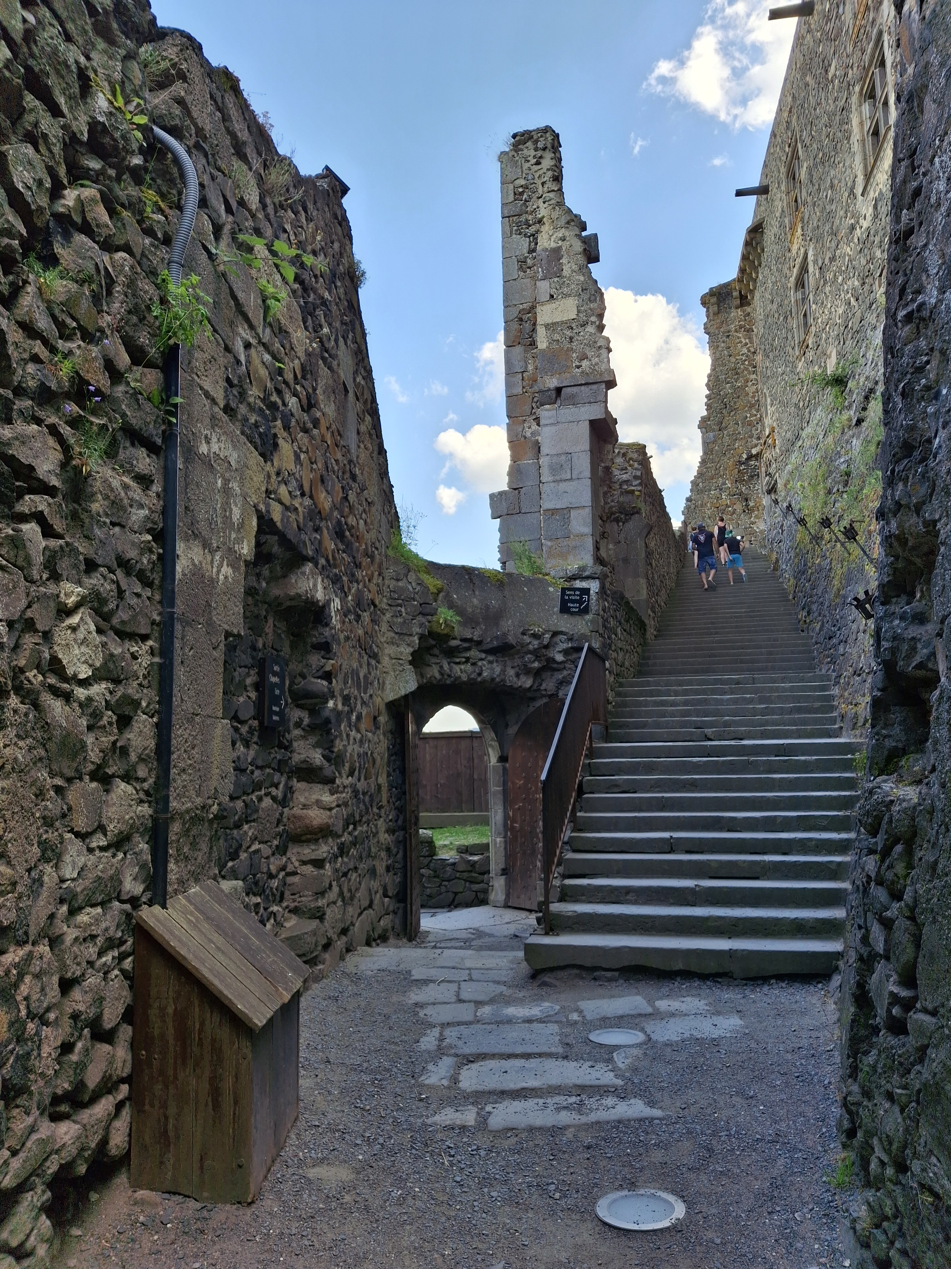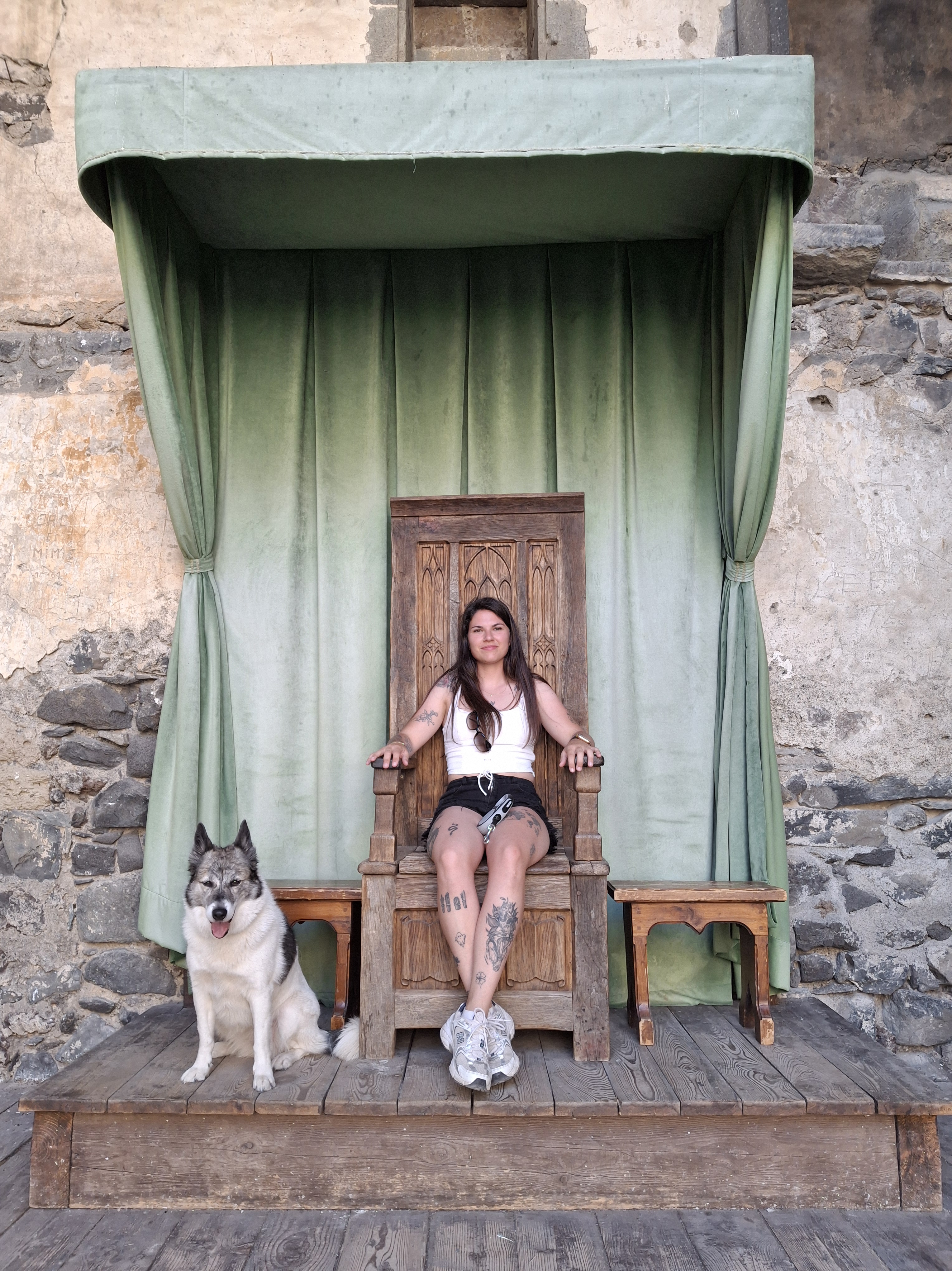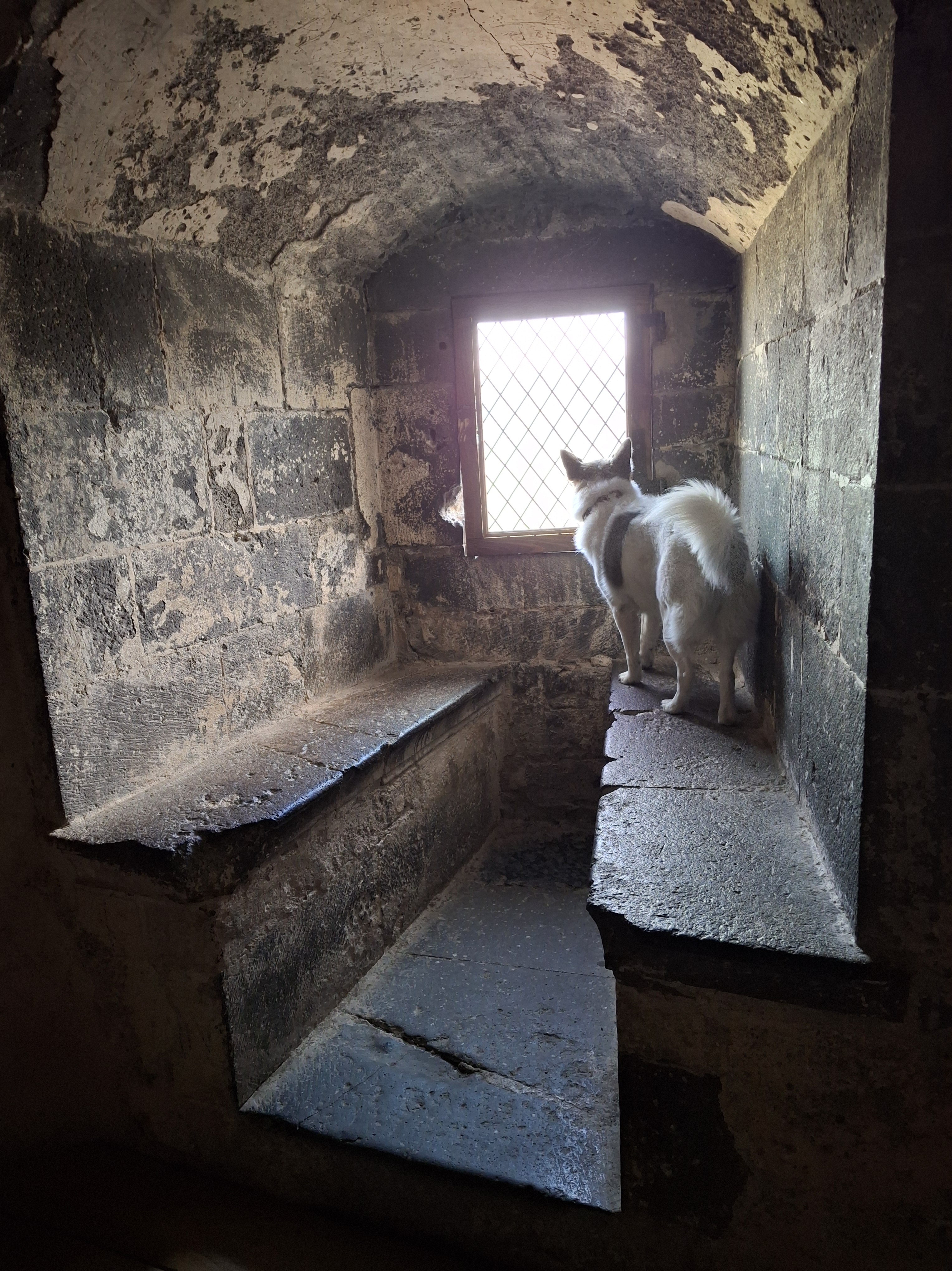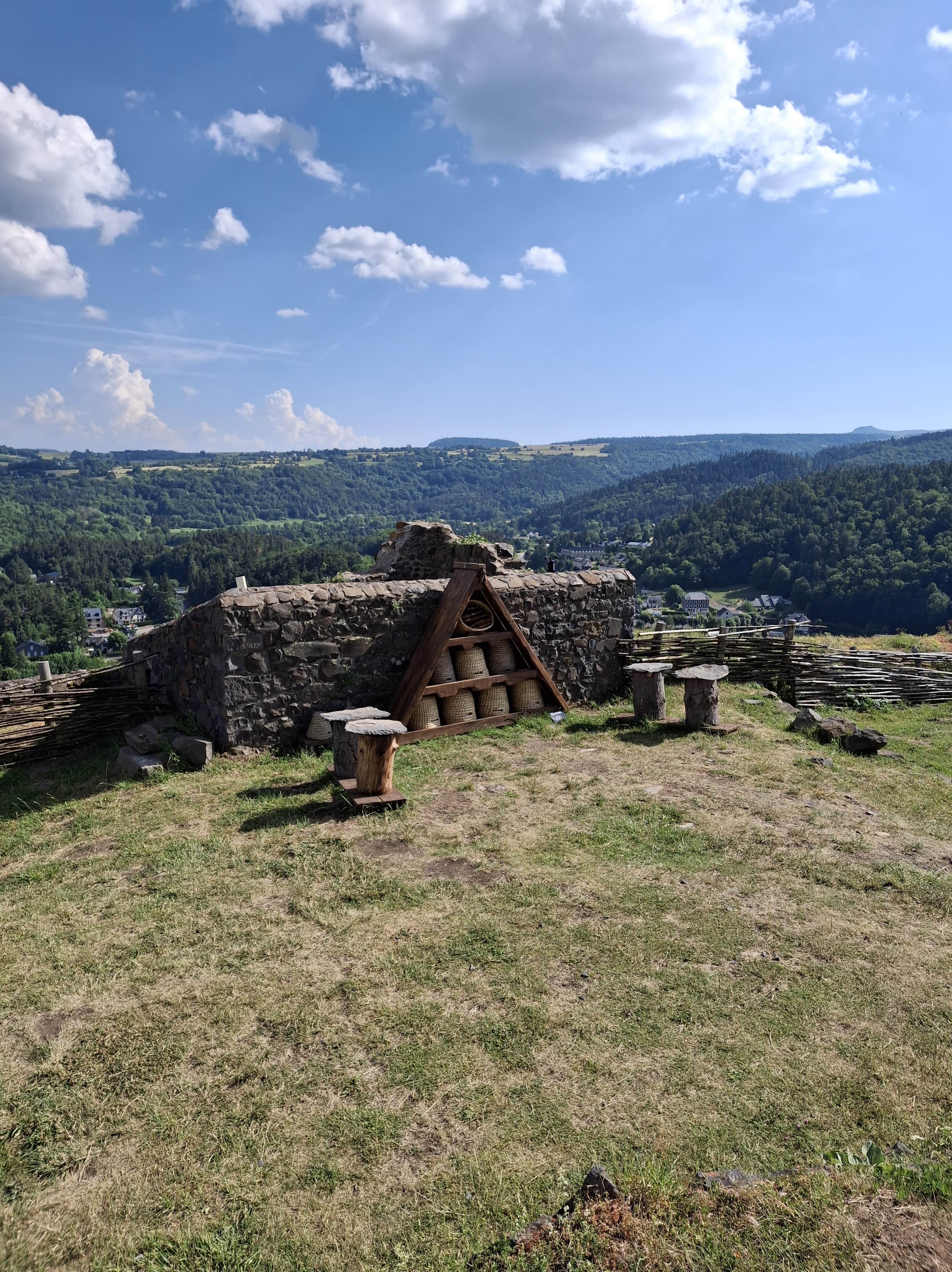Puis nous rentrons au logement déposer la voiture. Nous partons pour 10-15min de marche pour visiter le château de Murol. Les chiens sont acceptés et la visite commentée est gratuite. Le tarif est de 11,20€ par adulte. La visite était très intéressante, le château en lui-même est aussi bien conservé. Il y a des pièces avec différentes mise en scène, dans l’une d’elle, on peut essayer des costumes de l’époque.