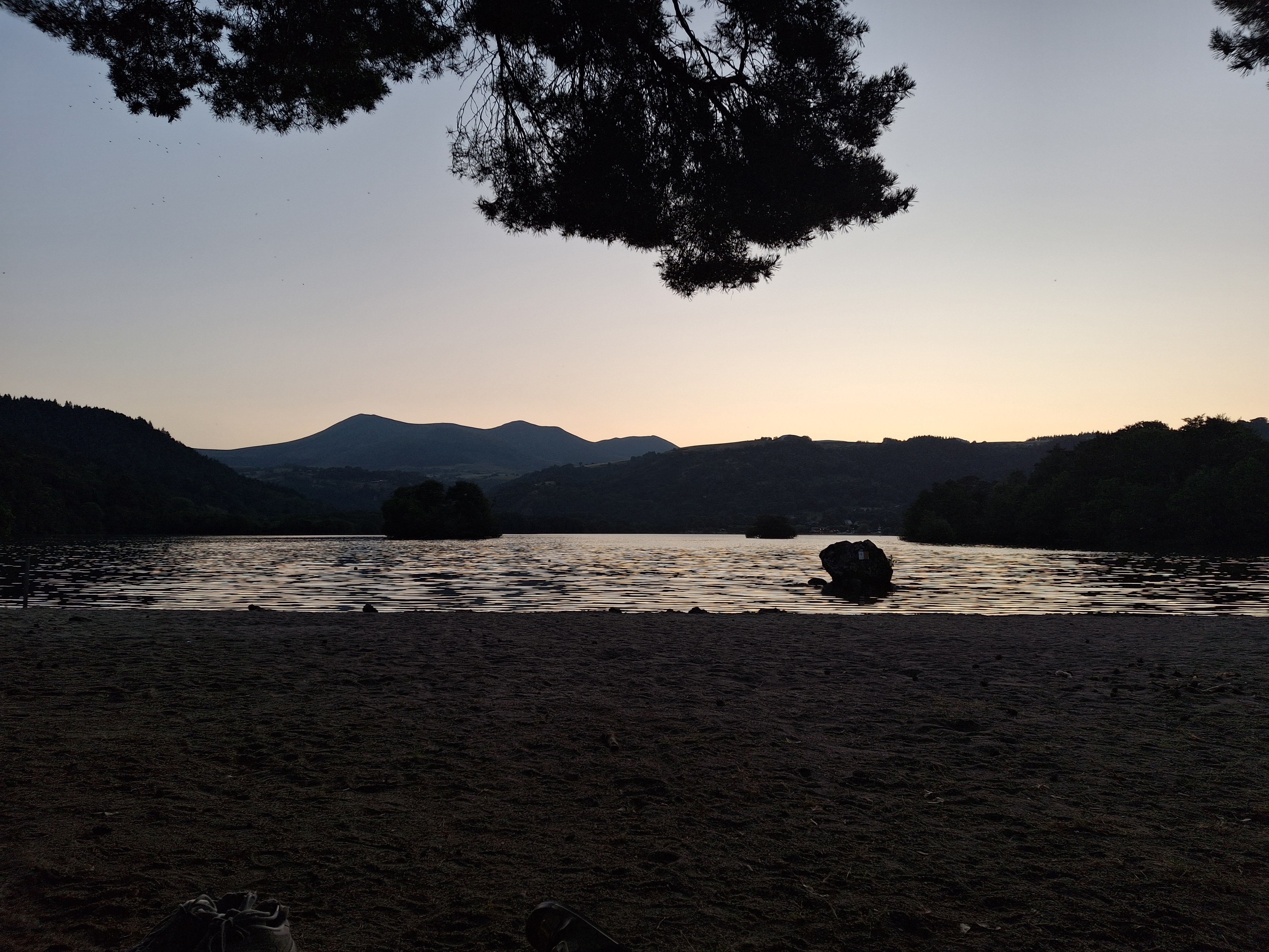 On retourne au logement se mettre en maillot et bain et prendre le pique-nique. On part au lac Chambon où on profite d’une petite baignade avec un splendide coucher de soleil.