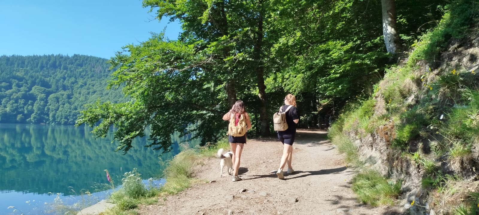 On arrive au logement dans l’après-midi. On dépose nos affaires, on se mets en maillot de bain et nous partons à pied au lac Chambon, qui se trouve à cinq minutes du gîte.