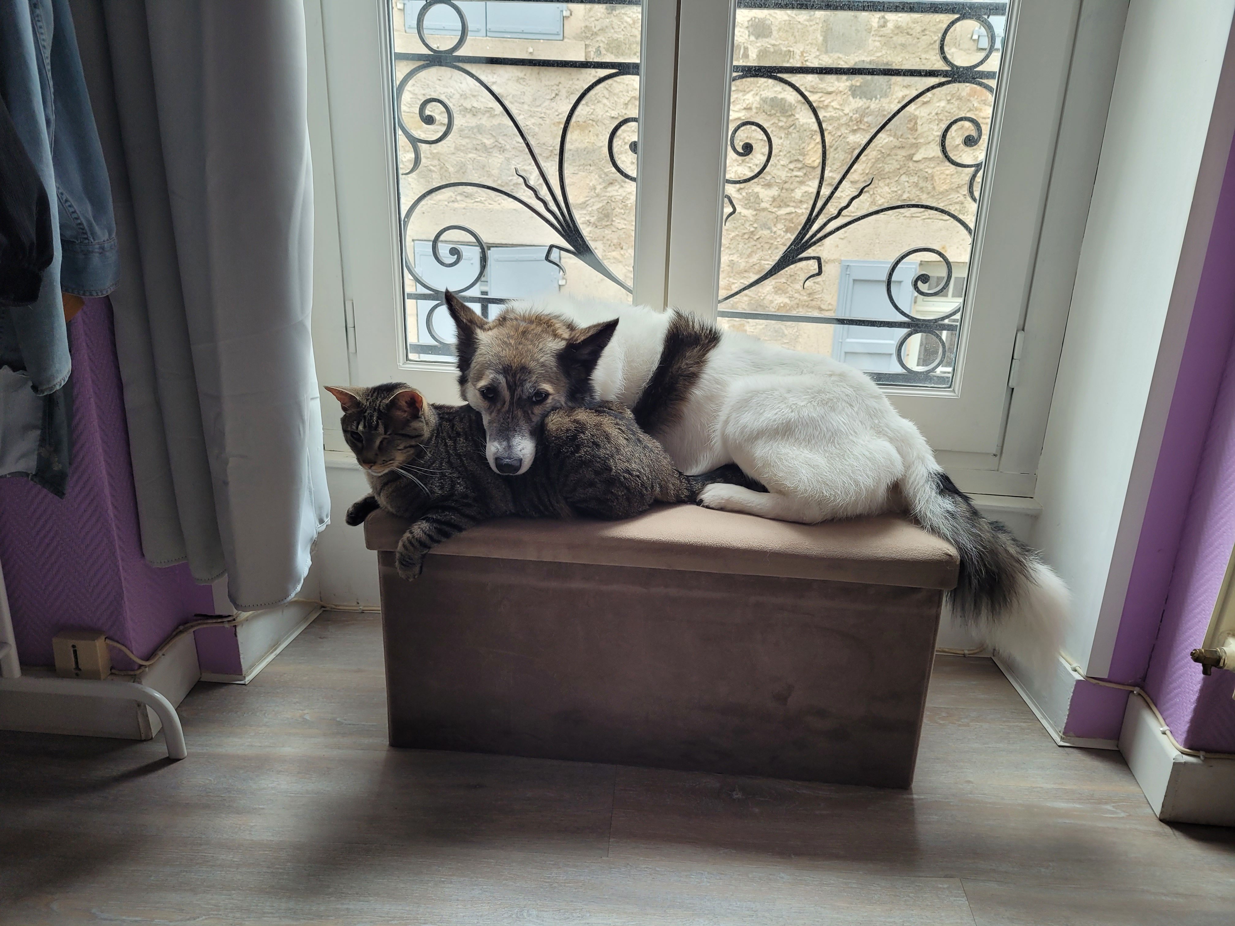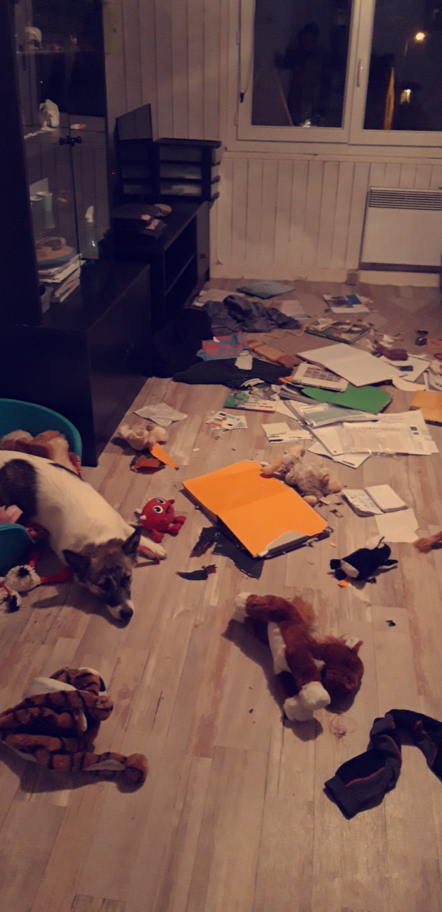 Ounie grandie avec trois chats (les miens) et Inka une croisé yorkshire (de ma mère). Quelques mois après, j’emménage dans mon premier appartement. Elle me faisait des bêtises plus ou moins importantes (télécommande et manette de console mâchouillées, livres déchirés, escalier abimé, trou dans le mur…). J’avais un travail qui m’absorbait souvent toute la journée, sans retour à la maison à midi et je savais que pour elle, c’était très long… Elle a toujours été propre, mais elle s’ennuyait beaucoup.