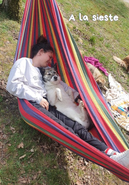 Entre temps, j’emménage dans un logement au refuge en tant que gardienne animalière. La sociabilisation des chiens avec Nuée se passait à merveille, elle était toute la journée dehors avec les chiens les plus sociables du refuge.