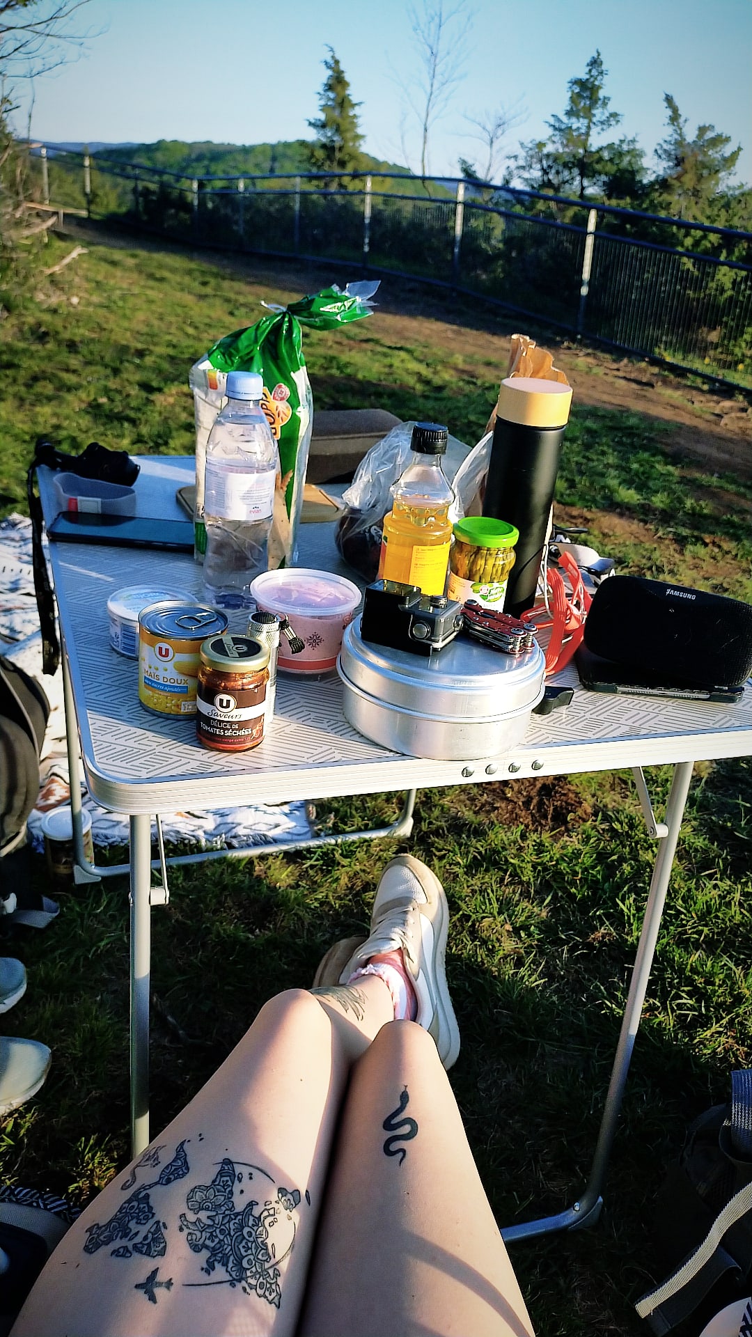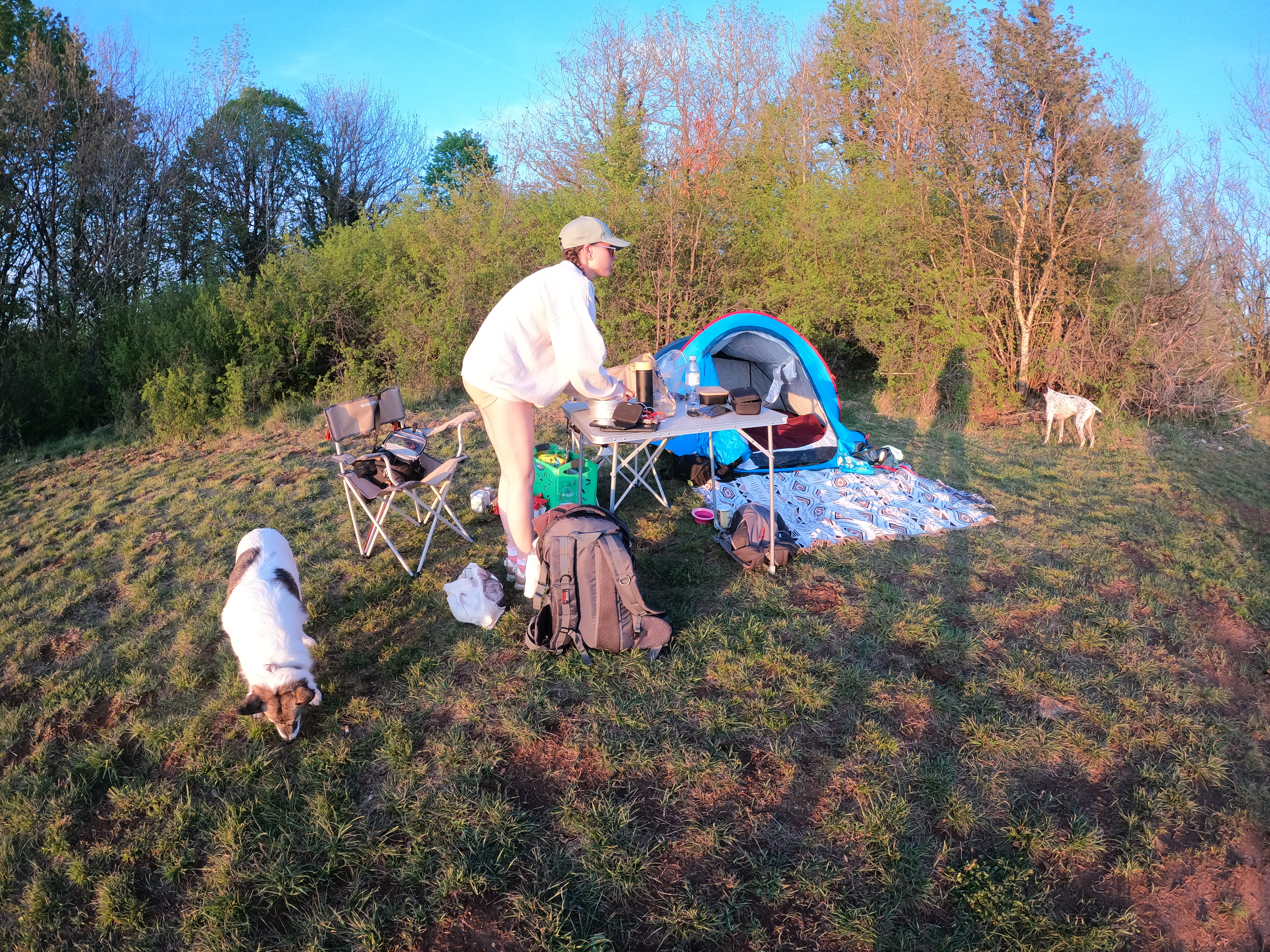 Notre tout premier road trip ensemble a eu lieu en mai 2021. J’étais accompagnée d’une amie d’autrefois et de son chien. Pour notre première nuit, nous avons campé au belvédère du lac de Chalain, où nous avons eu la chance d’admirer un magnifique coucher de soleil… puis le lever du jour le lendemain matin !