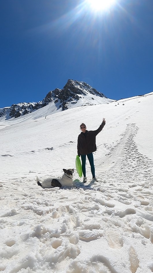 Sur cette vidéo ⮕ c’était la première fois que je faisais du ski avec Nini (elle n’était pas attachée à moi, elle était libre et courait à côté). J’ai adoré ce moment. Je sentais que je prenais du plaisir et qu’elle aussi.