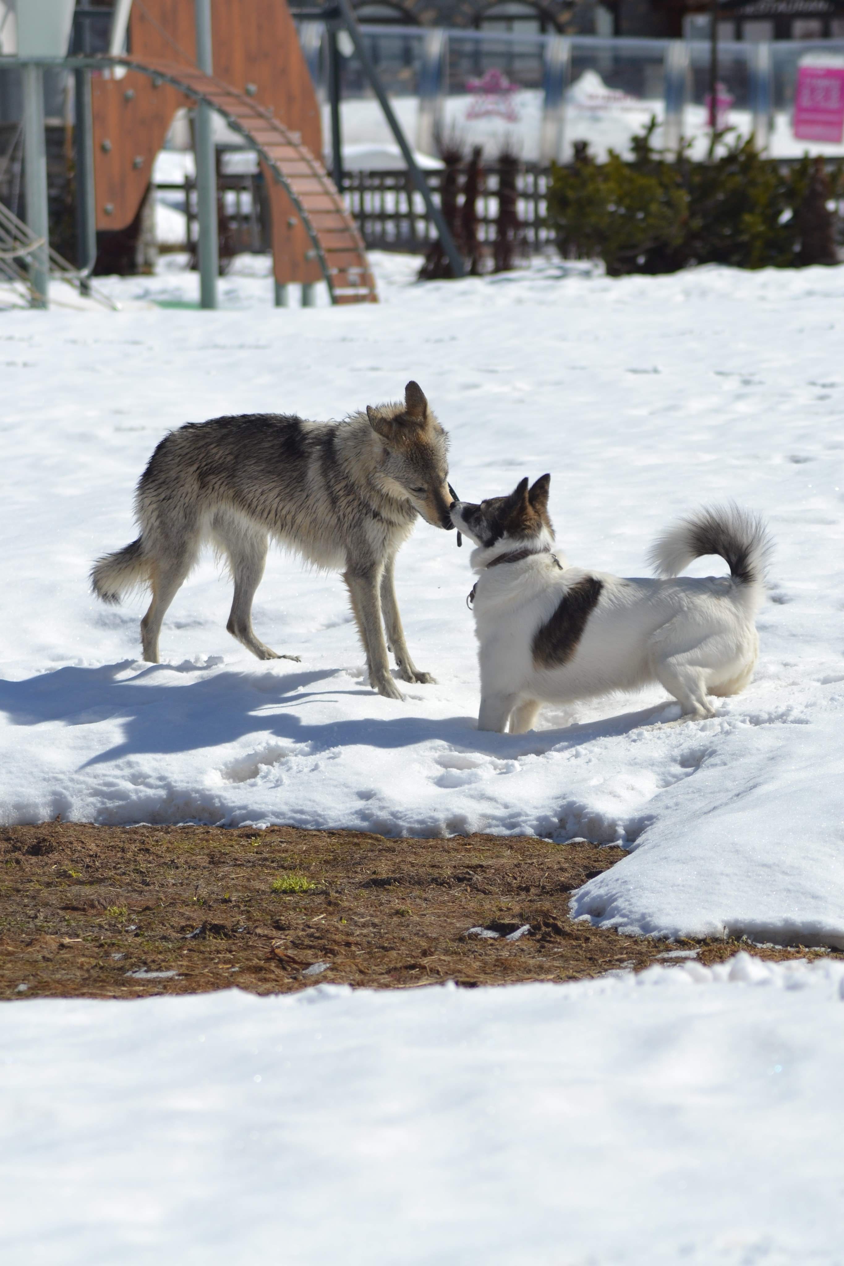 Ounie a trouvée des copains pour jouer. Et c’était aussi la première fois que je faisais de la luge avec ma chienne (ce n’était pas une grande réussite mais c’était rigolo)