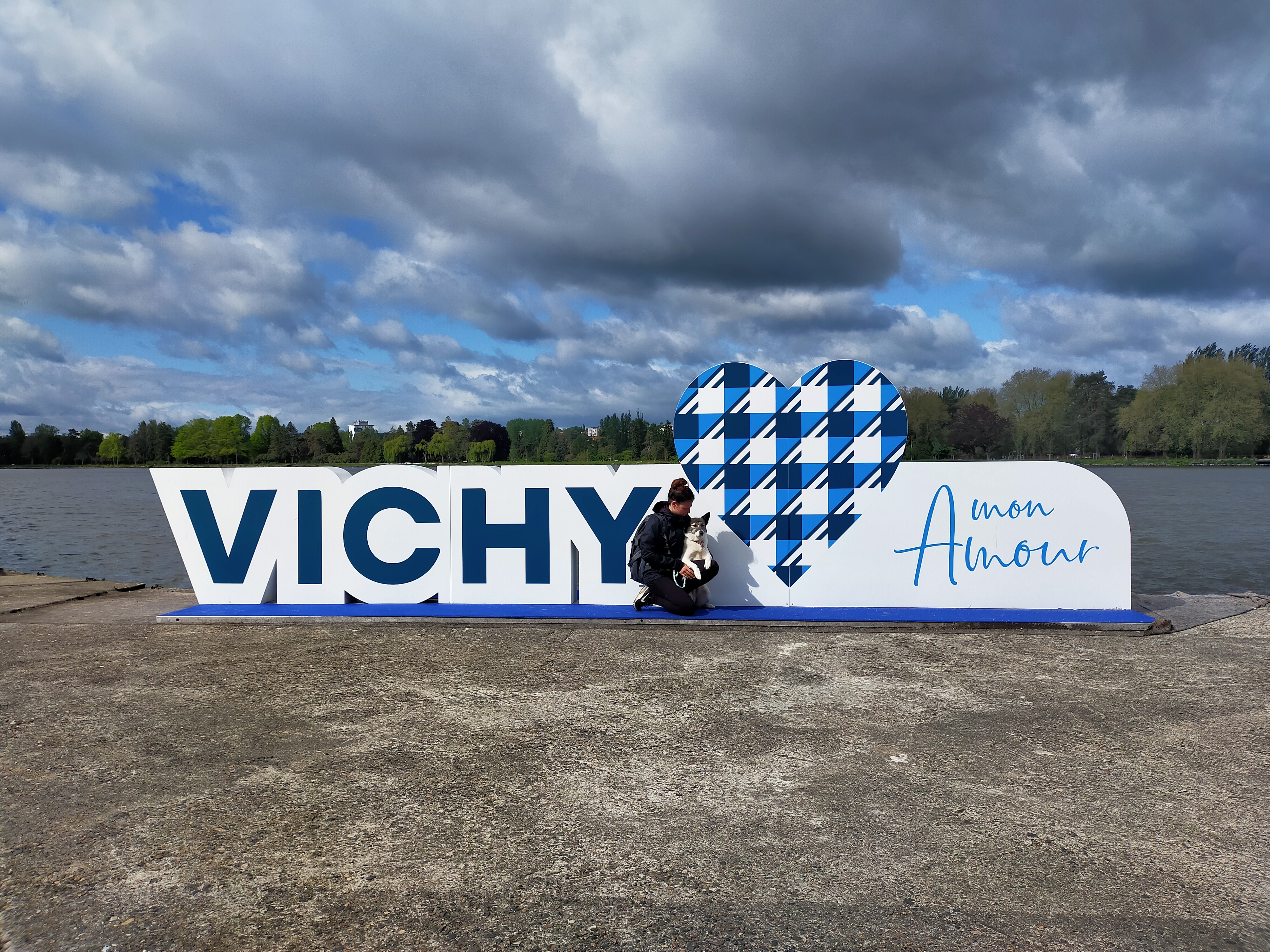 On a fini par faire une course d’orientation dans la ville de Clermont-Ferrand, à la recherche de peintures murales et ensuite visiter un peu la ville de Vichy. Le bateau touristique qui traverse d’une rive à l’autre est gratuit. L’occasion pour moi de voir comment se comporter Nini à bord. C’était une réussite, elle n’a pas eu peur.