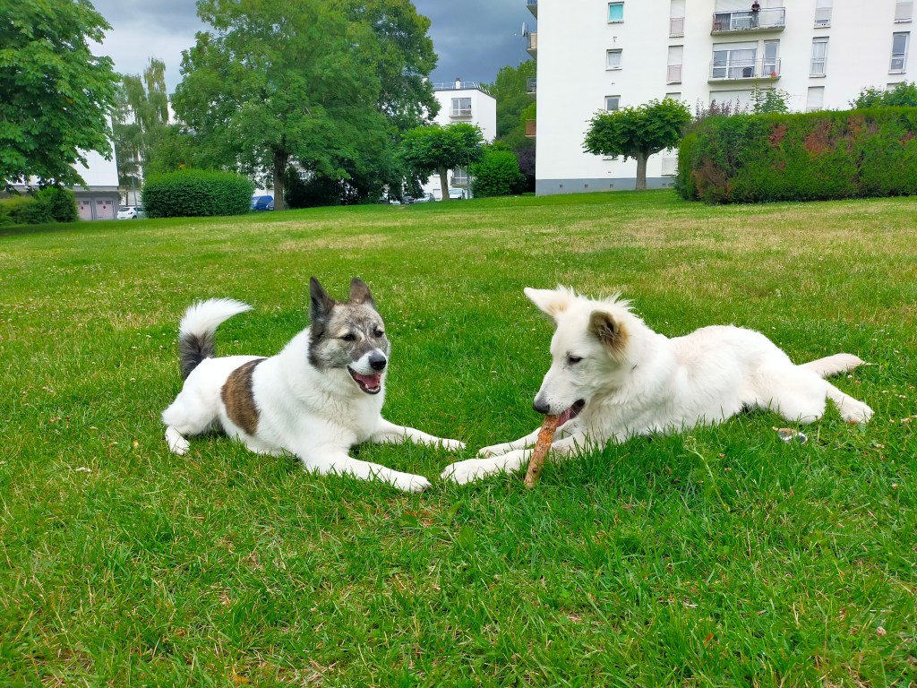 Aussi souvent que possible, je l’emmène faire des balades où elle peut rencontrer d’autres chiens, qu’elle connaisse déjà ou qu’elle découvre pour la première fois. Ces moments sont essentiels pour elle : non seulement elle peut se dépenser et s’amuser en liberté, mais aussi créer de nouvelles amitiés canines. C’est une vraie bouffée d’air frais pour elle, qui lui permet de socialiser, de se stimuler mentalement et de profiter pleinement de ses sorties.